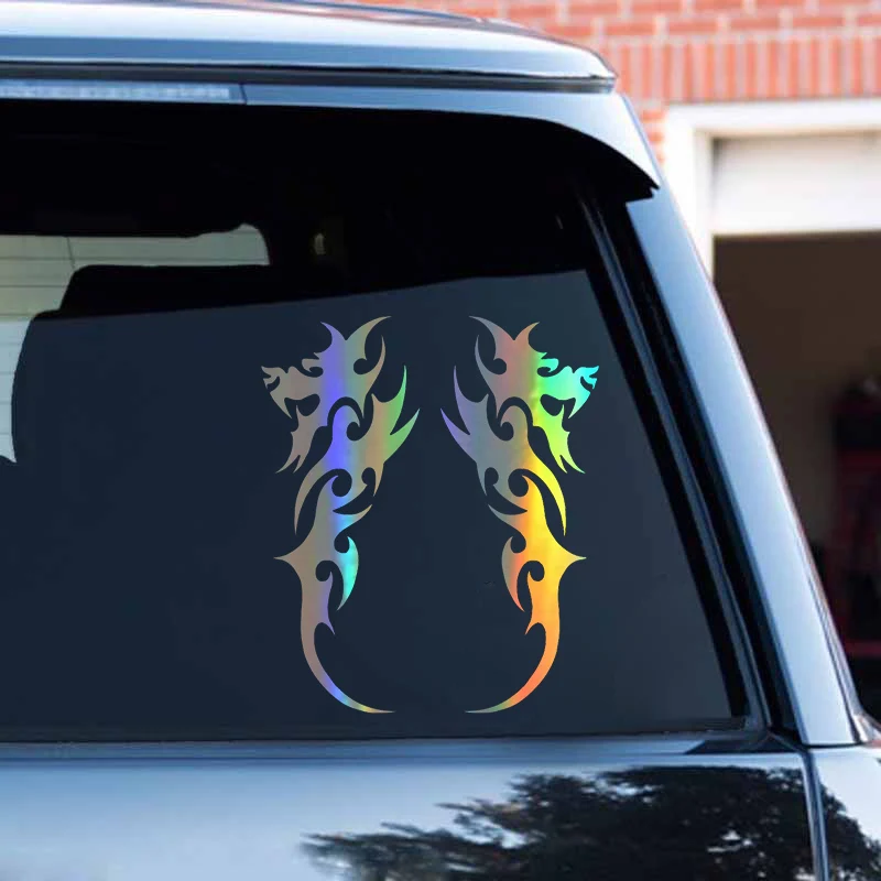 Наклейка на автомобиль, 2 шт., модный светоотражающий предупреждающий знак с племенным драконом, веселая наклейка на авто наклеек, виниловый лазер, Стайлинг автомобиля