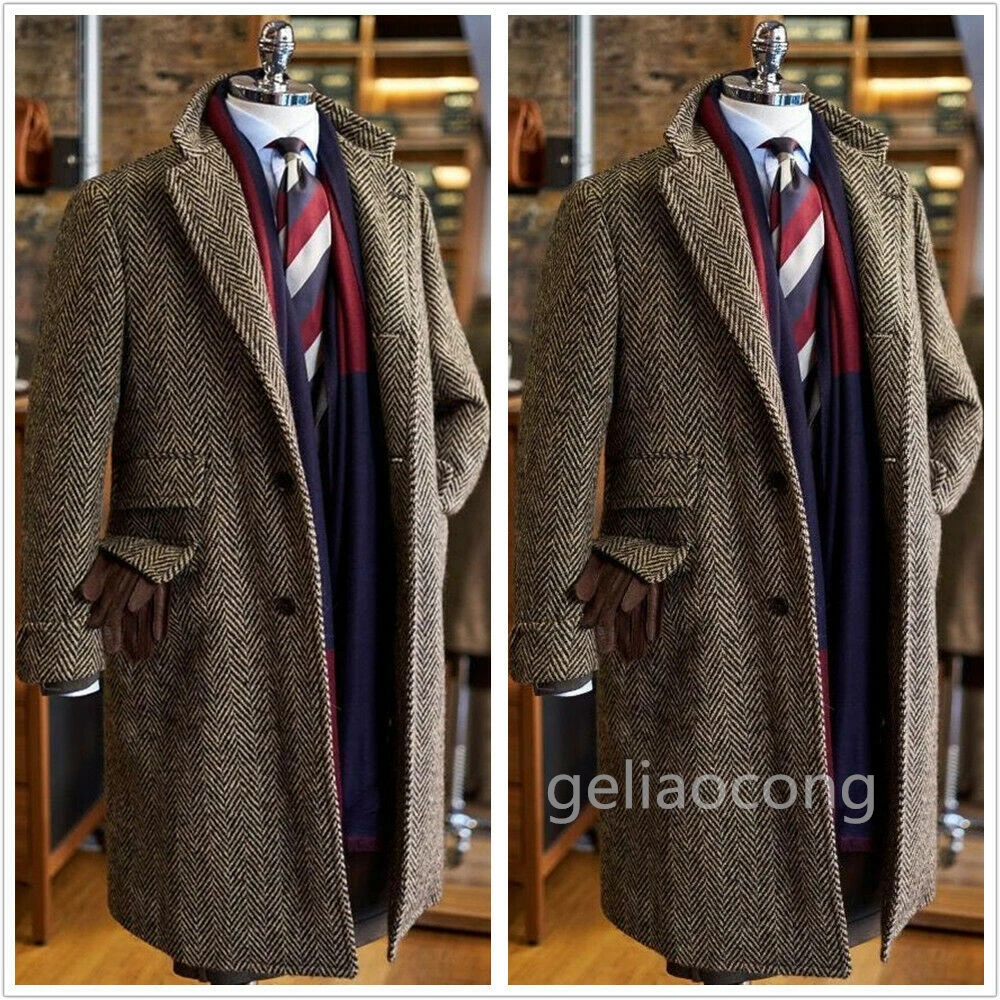 Коричневый шерстяной твидовый Длинный блейзер в елочку приталенный мужской пиджак на заказ только пиджак мужское платье свадебный жилет