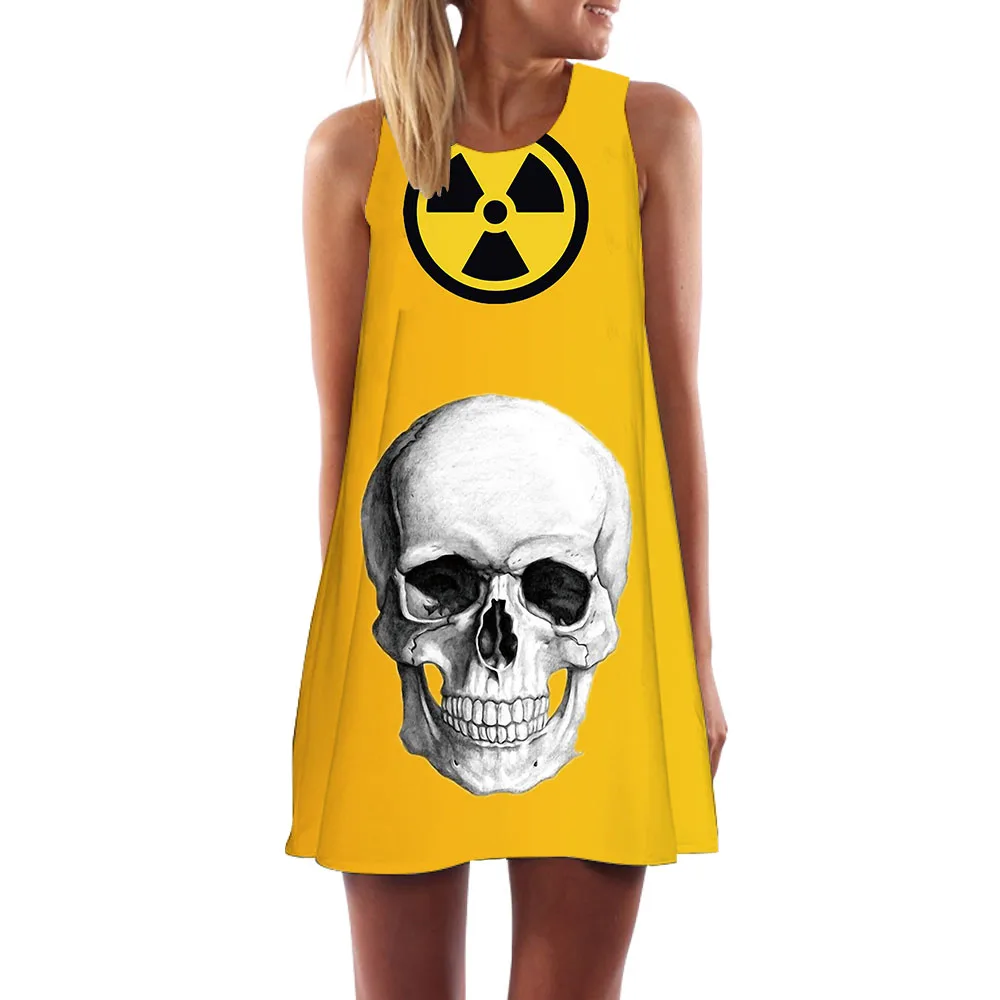 Платье KYKU женское в стиле панк, с черепом, бохо, с 3D-принтом, с ...