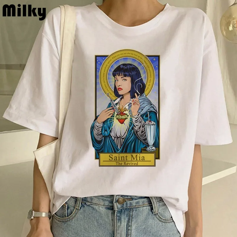 Женская футболка с принтом из фильма Криминальная литература, летняя футболка в стиле ольччан, модные женские футболки, Забавные топы в стиле Харадзюку