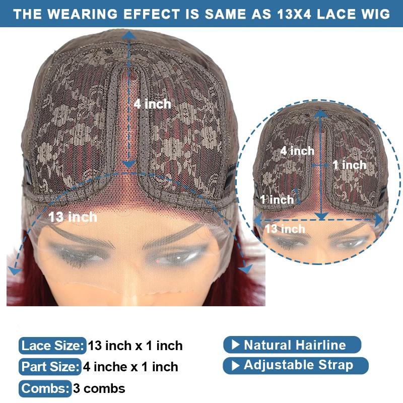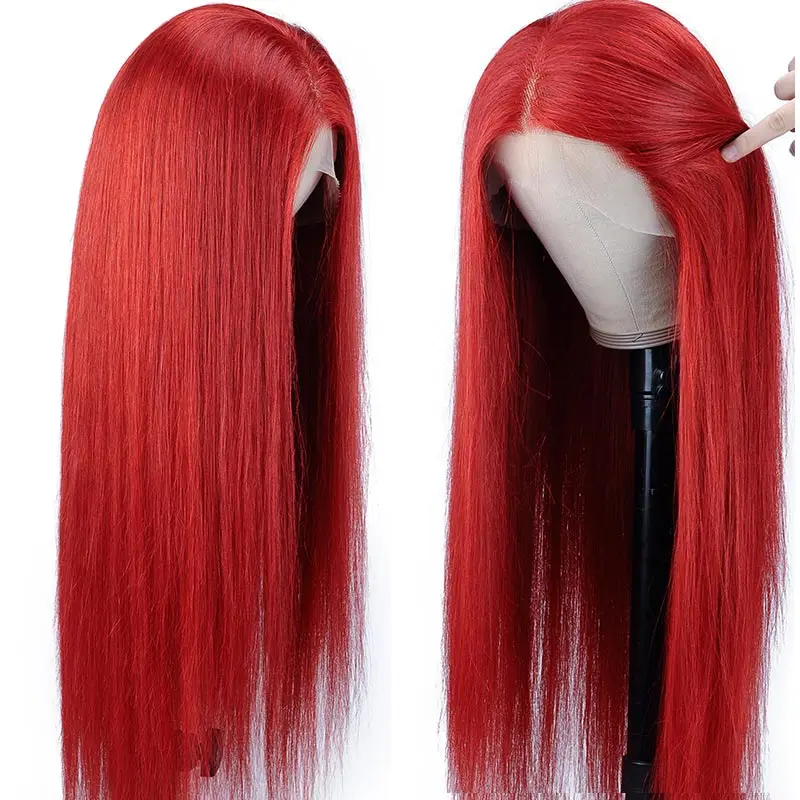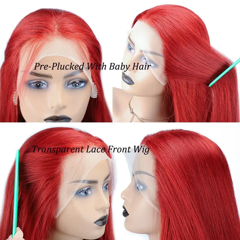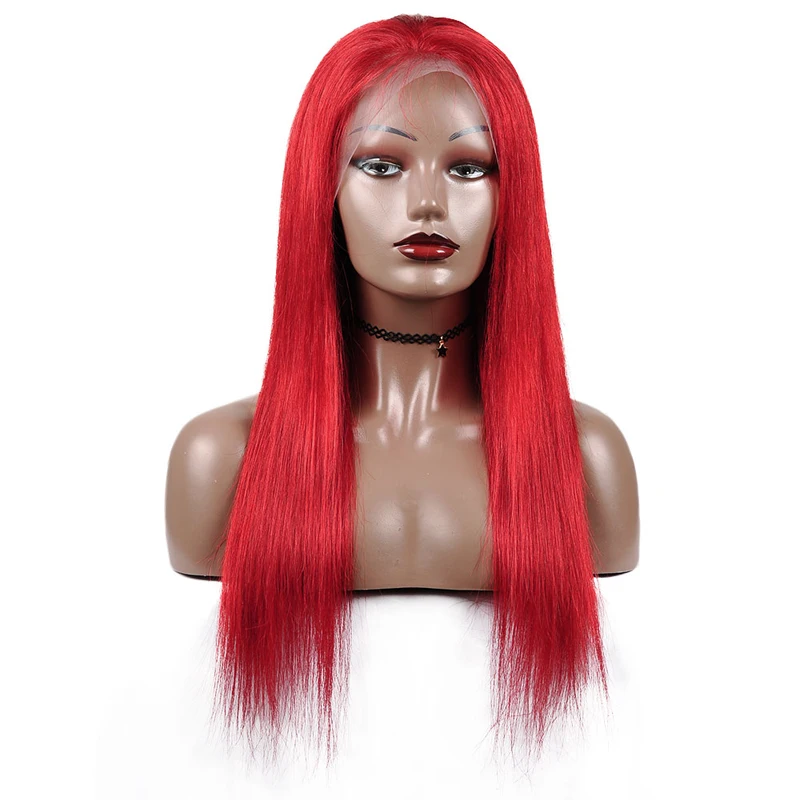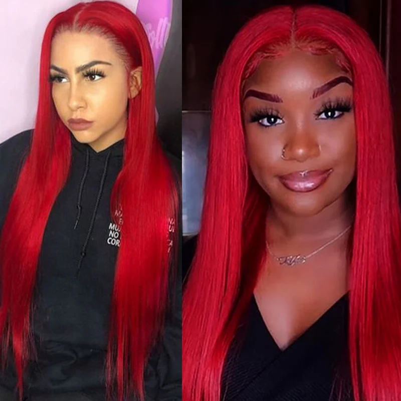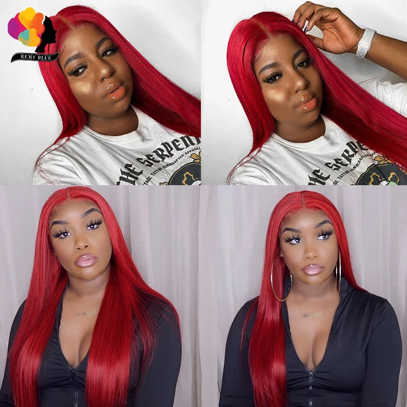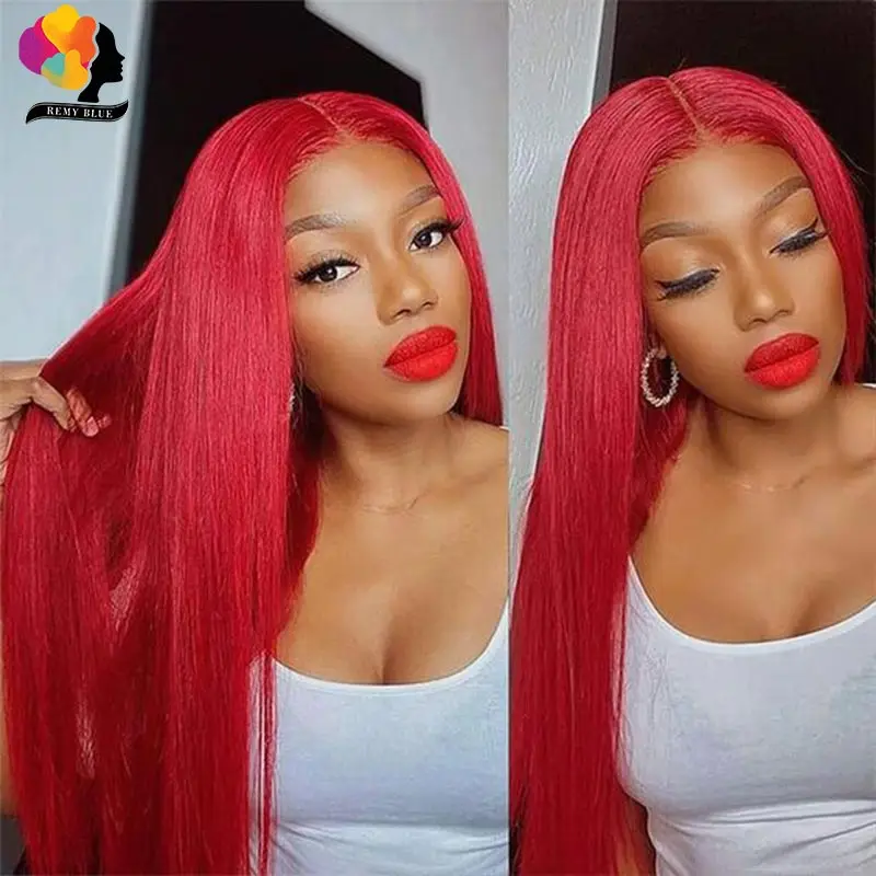 Красный парик 13*1 из человеческих волос на сетке спереди для женщин, прямой парик на сетке спереди, перуанские волосы Remyblue, парики без повреждений, предварительно выщипанные 150%
