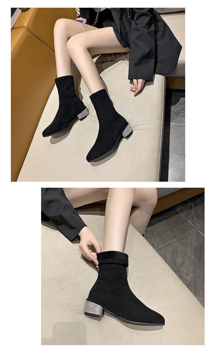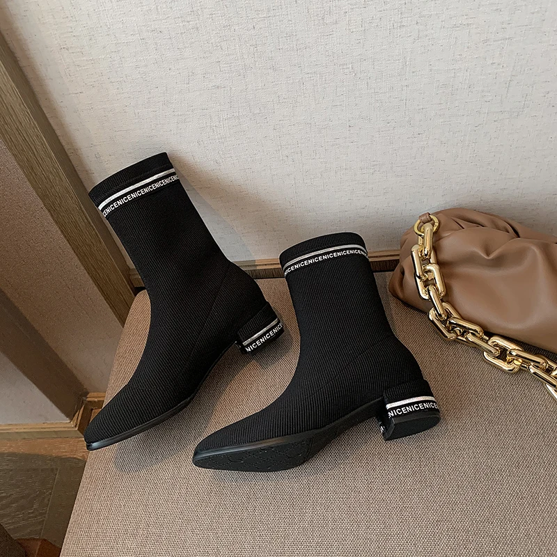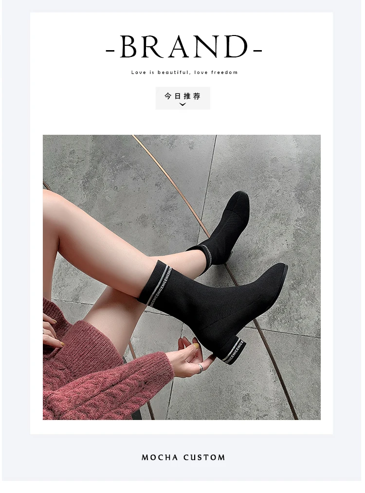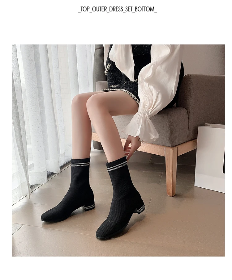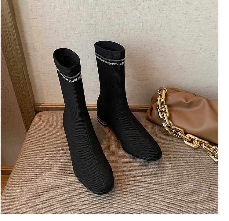 Сапоги-носки LazySeal женские, стрейчевые, до середины икры, на квадратном каблуке, с ремешком, дышащие, мотоциклетные ботинки