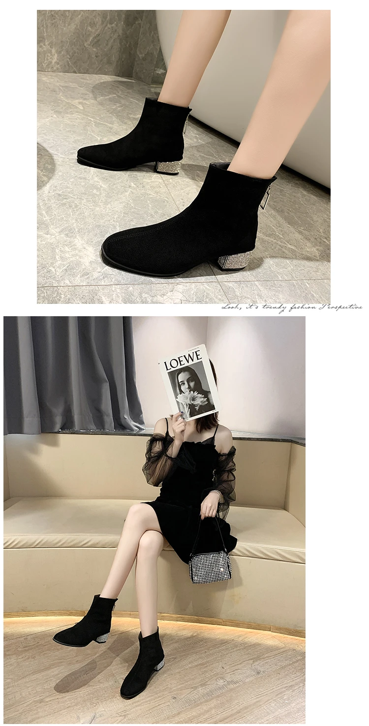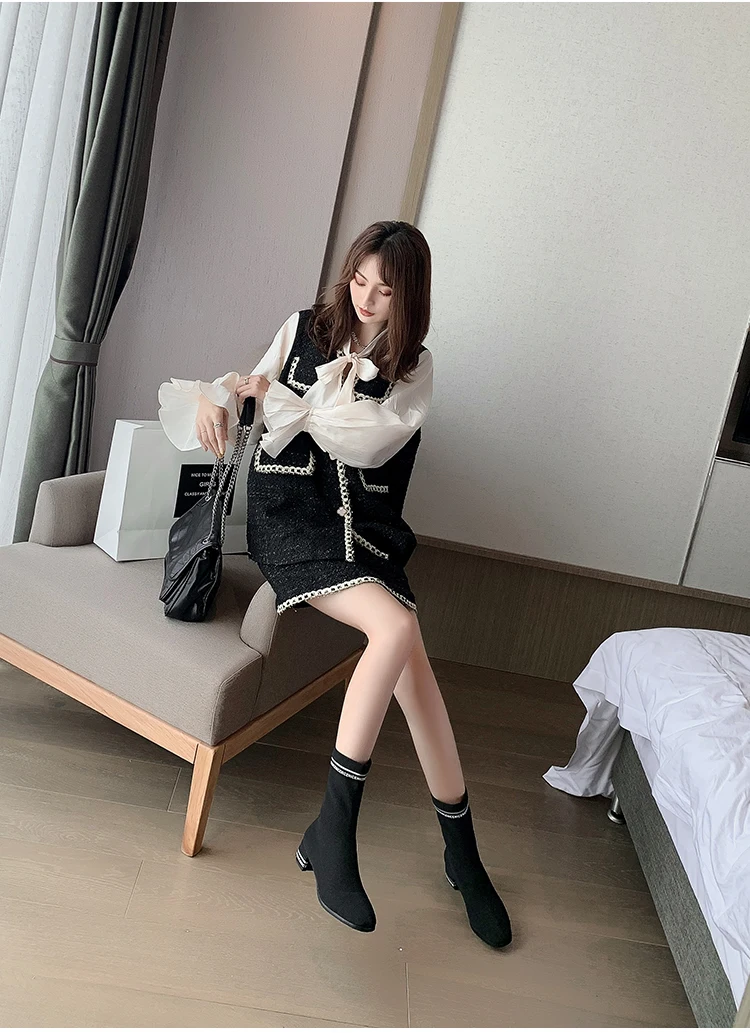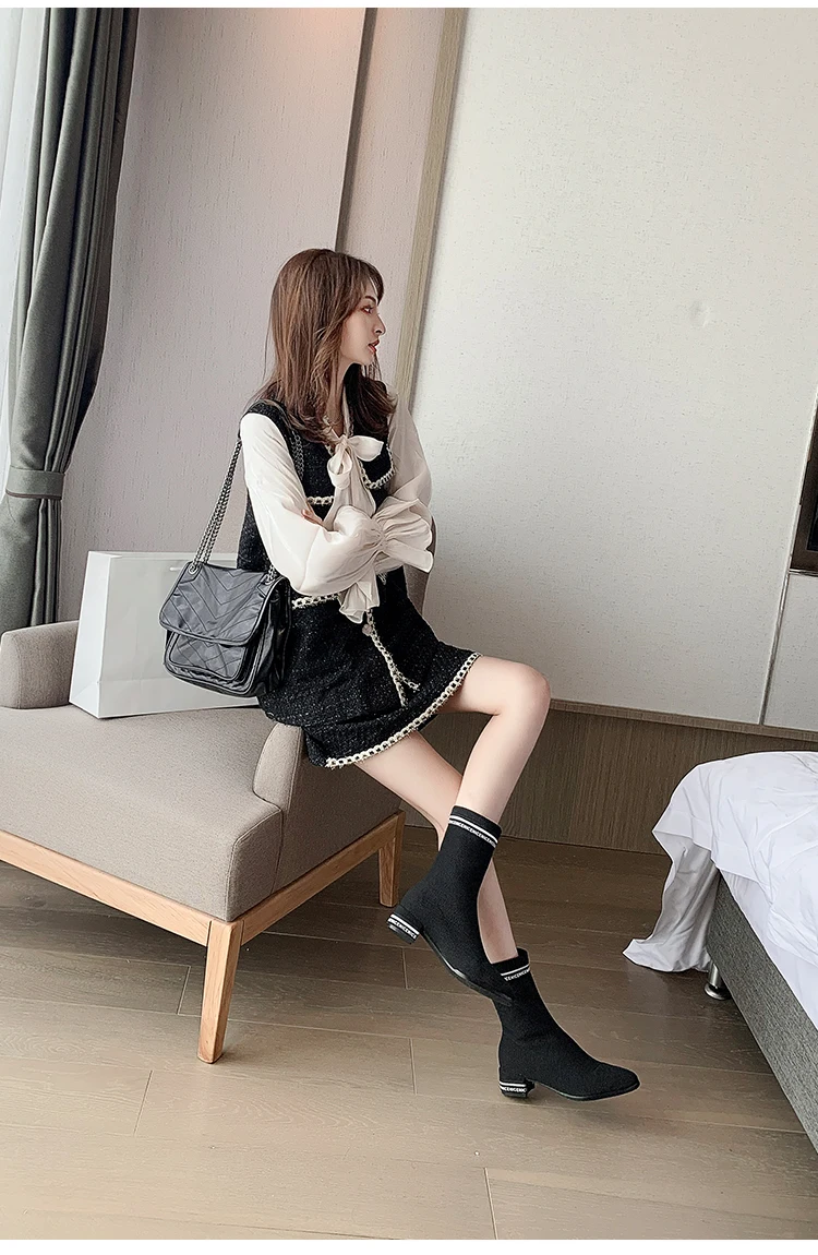Сапоги-носки LazySeal женские, стрейчевые, до середины икры, на квадратном каблуке, с ремешком, дышащие, мотоциклетные ботинки