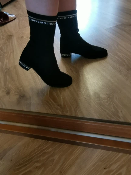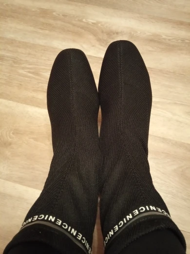 Очень-очень красивые сапожки! Каблук удобный, ткань немного тянется. Пришли аккуратно запакованные в два мешочка "пузырьковых". Пока не проверила опытным путём в носке, но уже завтра планирую надеть. Единственное, внушает подозрение мягкая пятка (попыталась сделать как можно более понятное фото с небольшой вмятиной). Но за такие деньги (1217 рублей) после сезона носки будет не жалко выбросить.