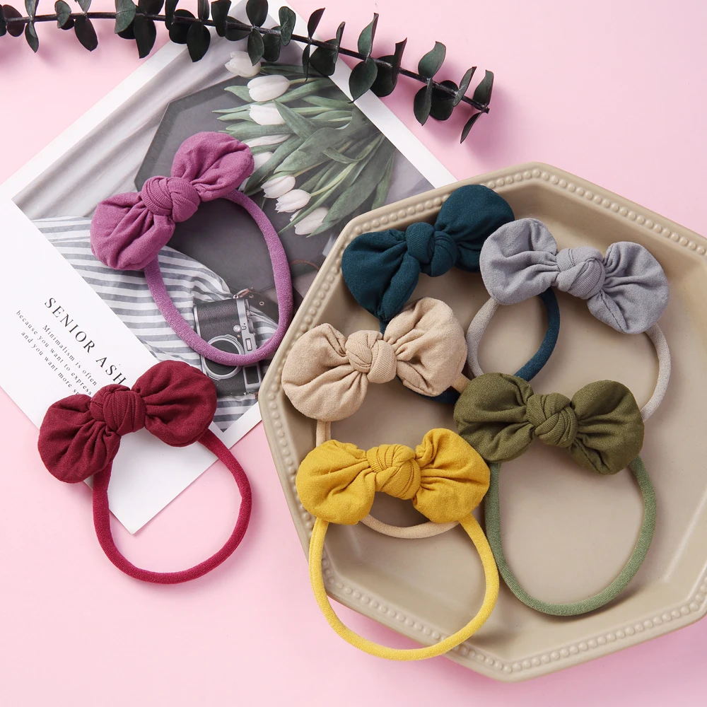 Повязка на голову из нейлона, 36 шт.лот, однотонная повязка на голову с бантом 2 дюйма, нейлон Детская повязка на голову с бантиком, нейлоновые банты, тюрбан, повязка на голову для девочек
