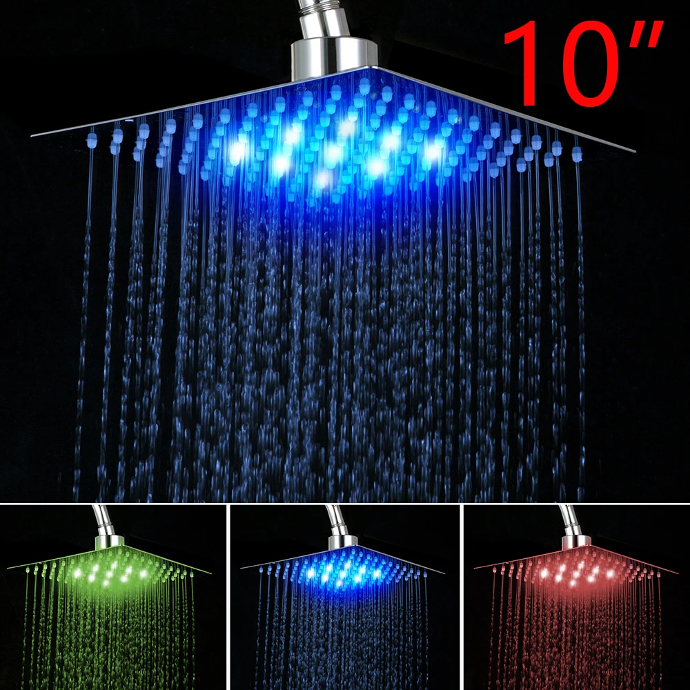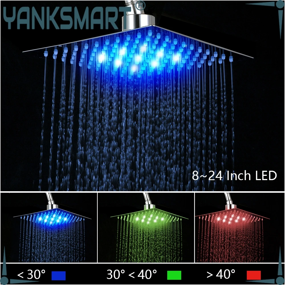 YANKSMART душевая головка роскошный хромированный латунный СВЕТОДИОДНЫЙ квадратный дождевой Душ для 8 "10" 12 "16" 20 "24"