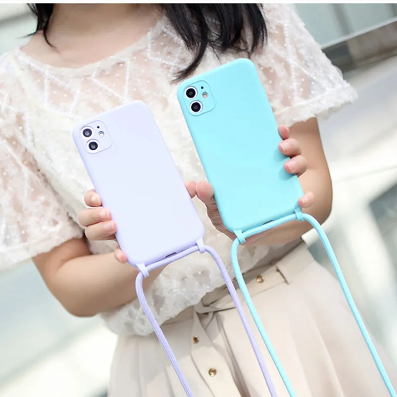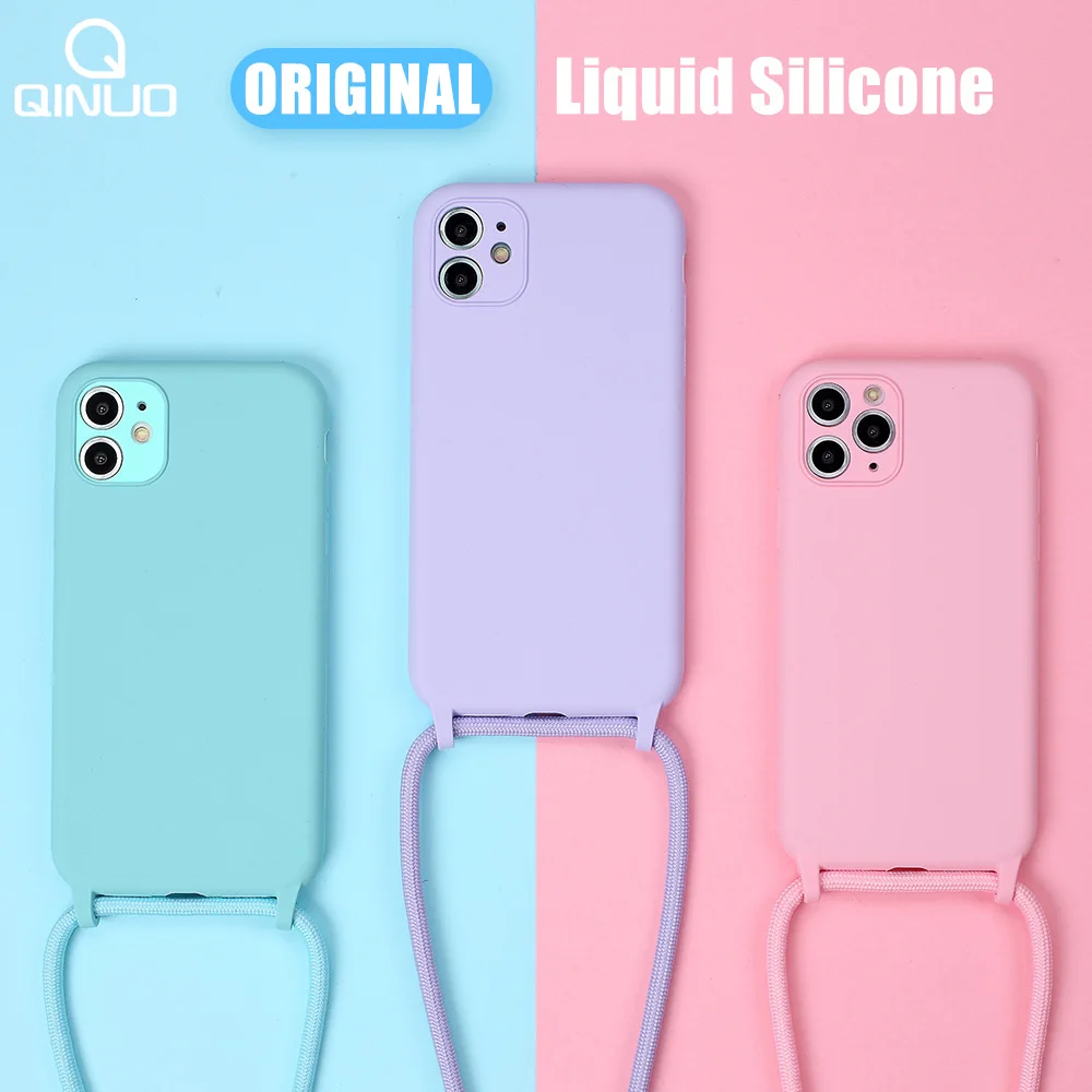 Чехол из жидкого силикона для iPhone 12 Mini 11 Pro Max SE 2020 X XR 6 7 8 Plus, ремешок на шею, шнур, веревка, мягкий чехол