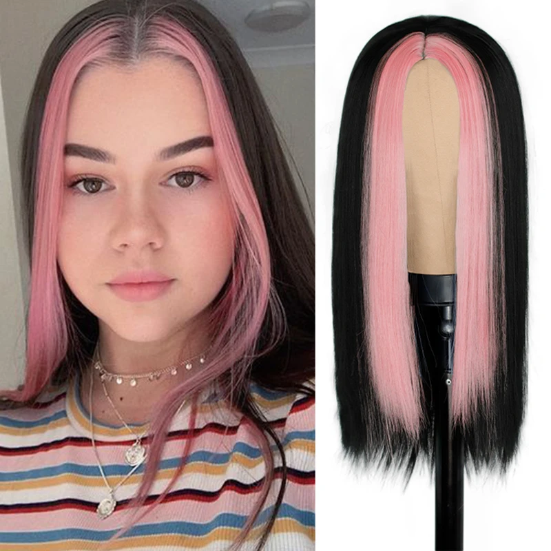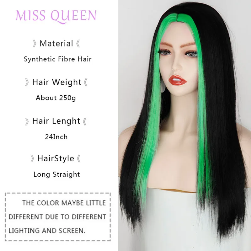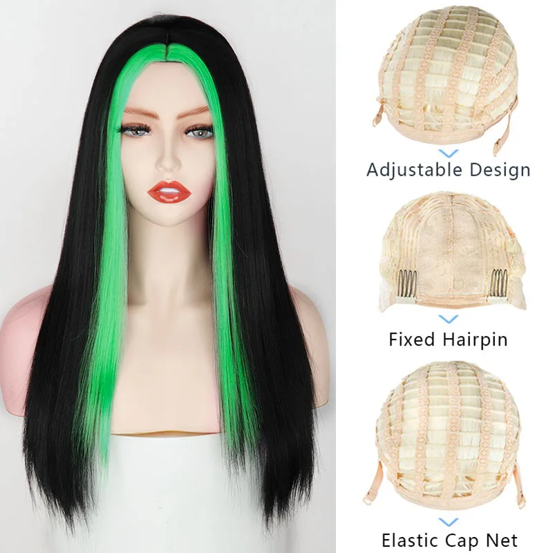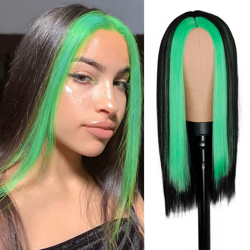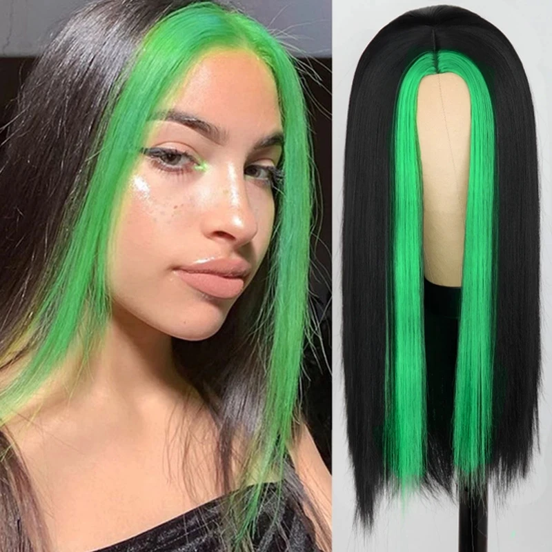 Парик женский, волнистый, с двусторонними зелеными волосами, термостойкий, черный