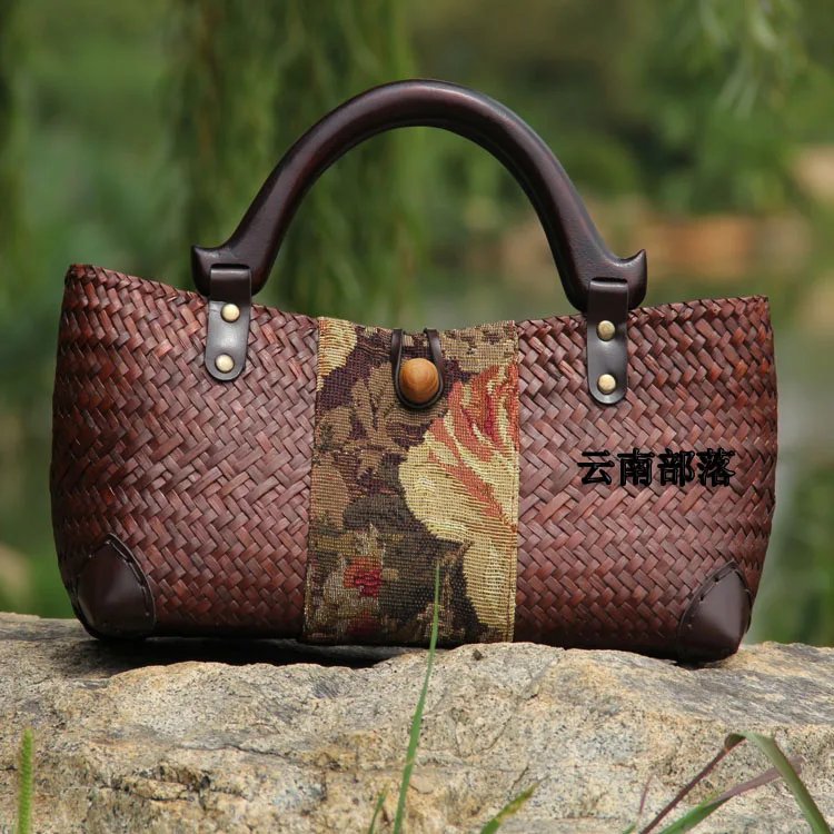 Оригинальная Плетеная соломенная сумочка в китайском стиле, ручной работы, 32x12 см, Ретро стиль a6103