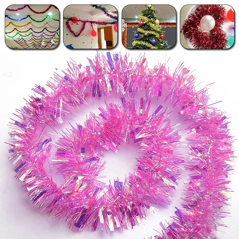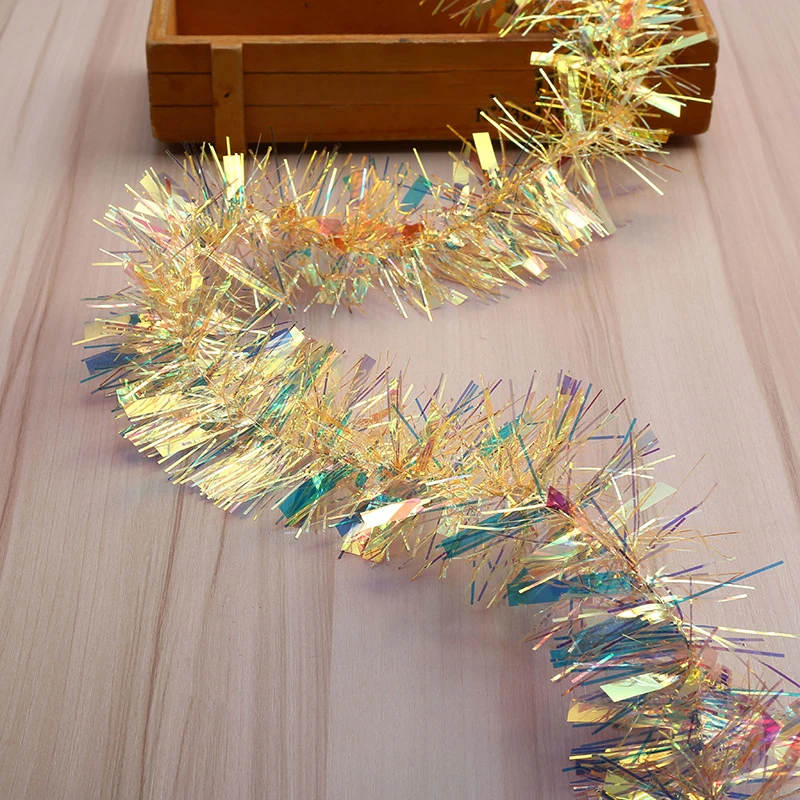 2 м Золотая Серебряная проволока мишура-гирлянда, висячая ротанговая Рождественская елка, украшение, Рождественская свадьба, день рождения, разноцветная лента