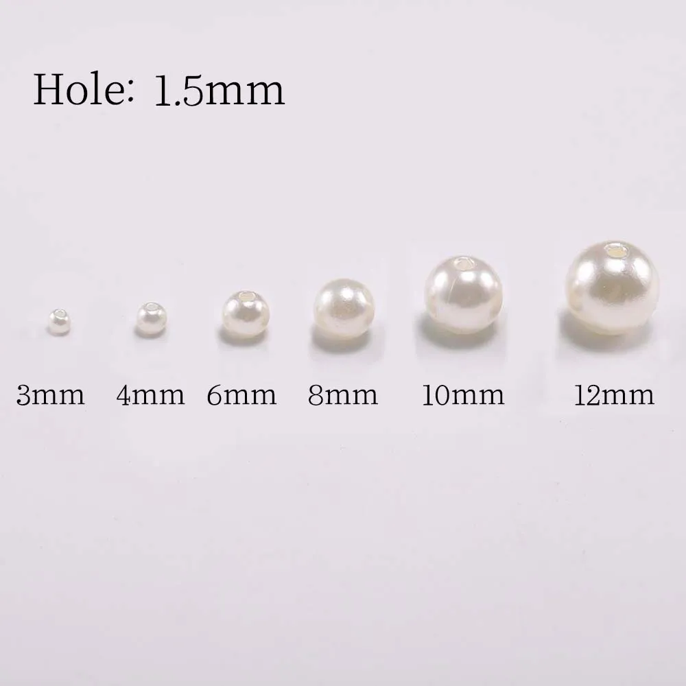 Бусины круглые из акрила и пластика с отверстием, имитация под жемчуг из АБС-пластика, свободные бусины с отверстием, принадлежности для изготовление, поиск ювелирных изделий, 3, 4, 6, 8, 10, 12 мм