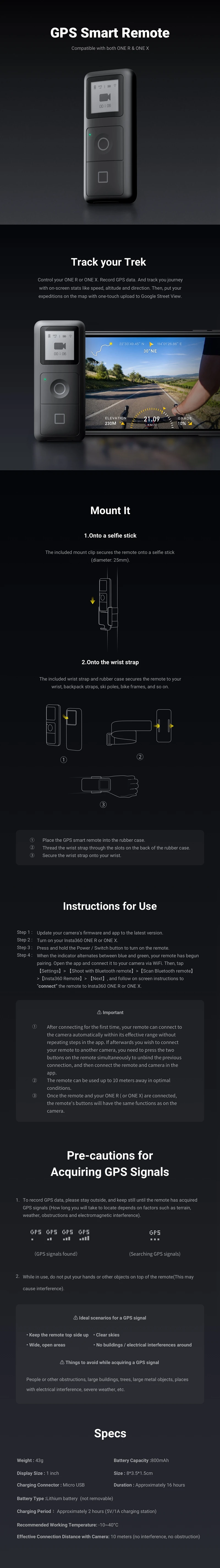 Оригинальный Insta360 10M GPS умный пульт для Insta360 ONE R с двумя объективами 360 / 4K широкий/1 дюйм и 1 X пульт дистанционного управления аксессуары