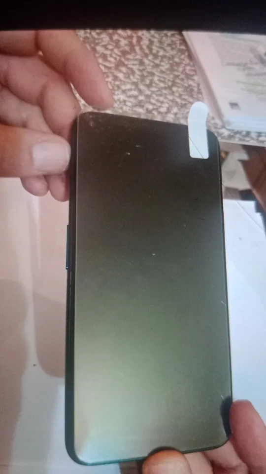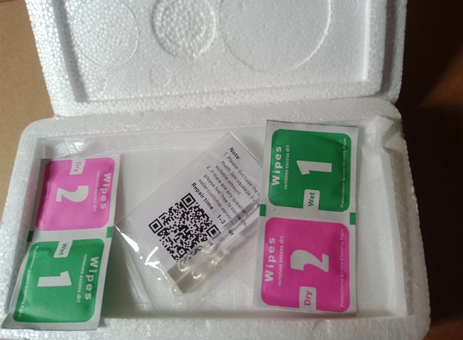 стекло на 2мм меньше с каждой стороны, не закрывает весь экран, в комплекте масляная жидкость для прилегания краев стекла, не удобно клеить.