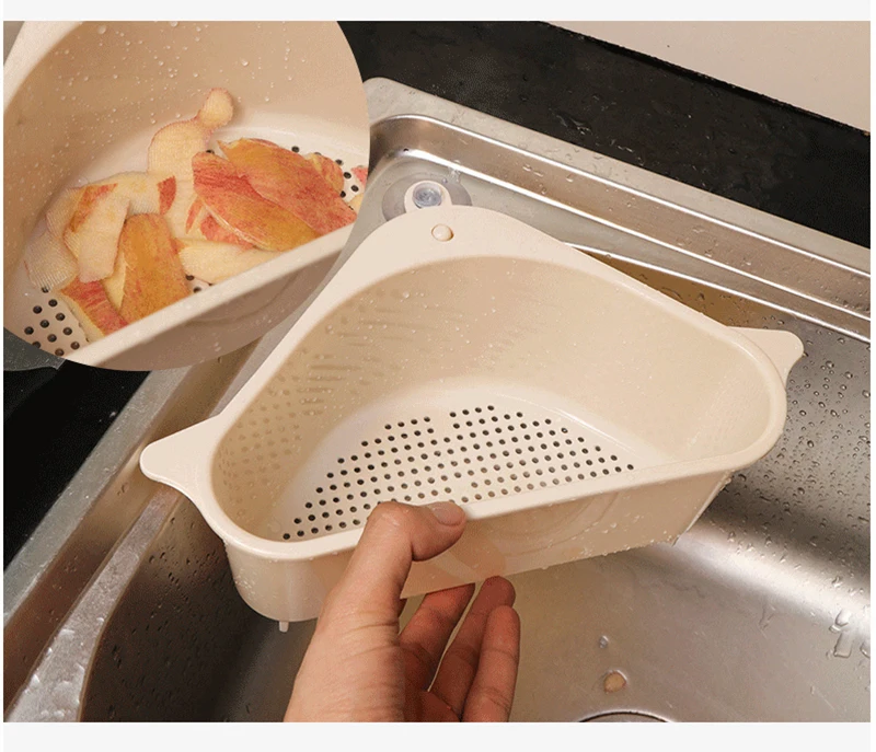 Треугольное сито для кухонной раковины, сушилка для овощей, фруктов, корзина, фильтр, органайзер для раковины с присоской, кухонный Органайзер