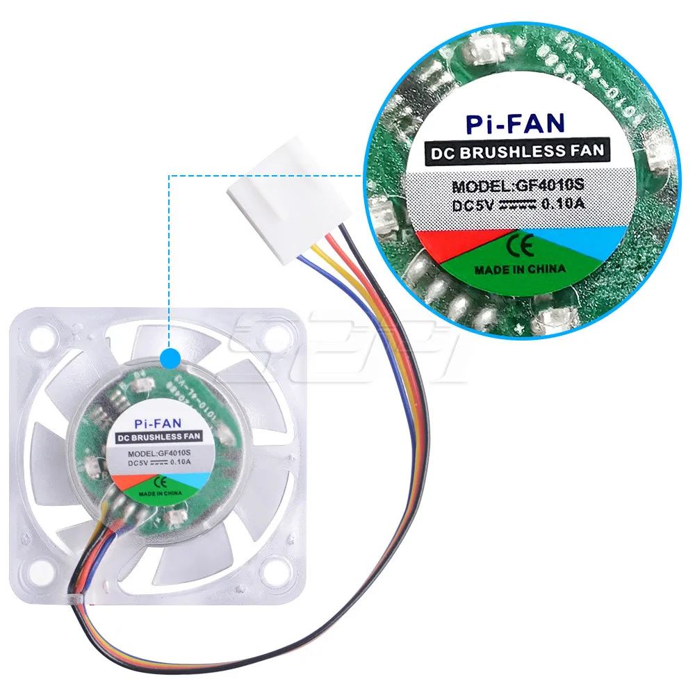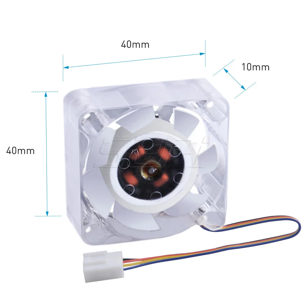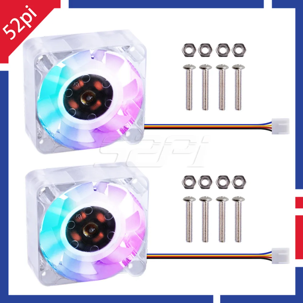 Вентилятор охлаждения 52Pi 4010, 2 шт., бесщеточный, RGB-подсветка, 4010 PWM, цветной, медленно мигающий, прозрачный, вентилятор для Jetson Nano