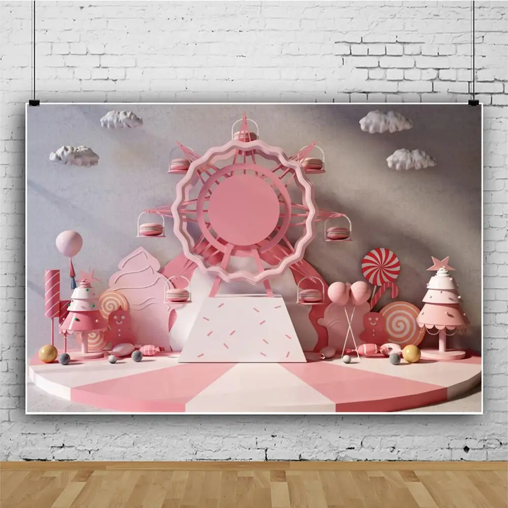 Розовая фотография, конфеты, леденцы, колесо обозрения, декор для вечеринки на день рождения, портрет, Фотофон для фотостудии