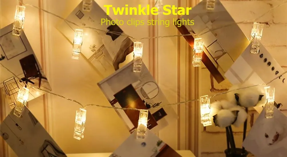 Рождественские огни мерцающие декоративные светодиодный осветительные приборы для фото клип гирлянда на батарейках гирлянда Рождественские украшения для дома