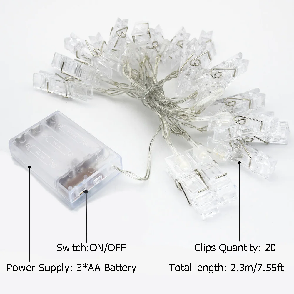 Рождественские огни, мерцающие светодиодный ные огни, зажим для фото, гирлянда, работающая от батареи, рождественские украшения для дома