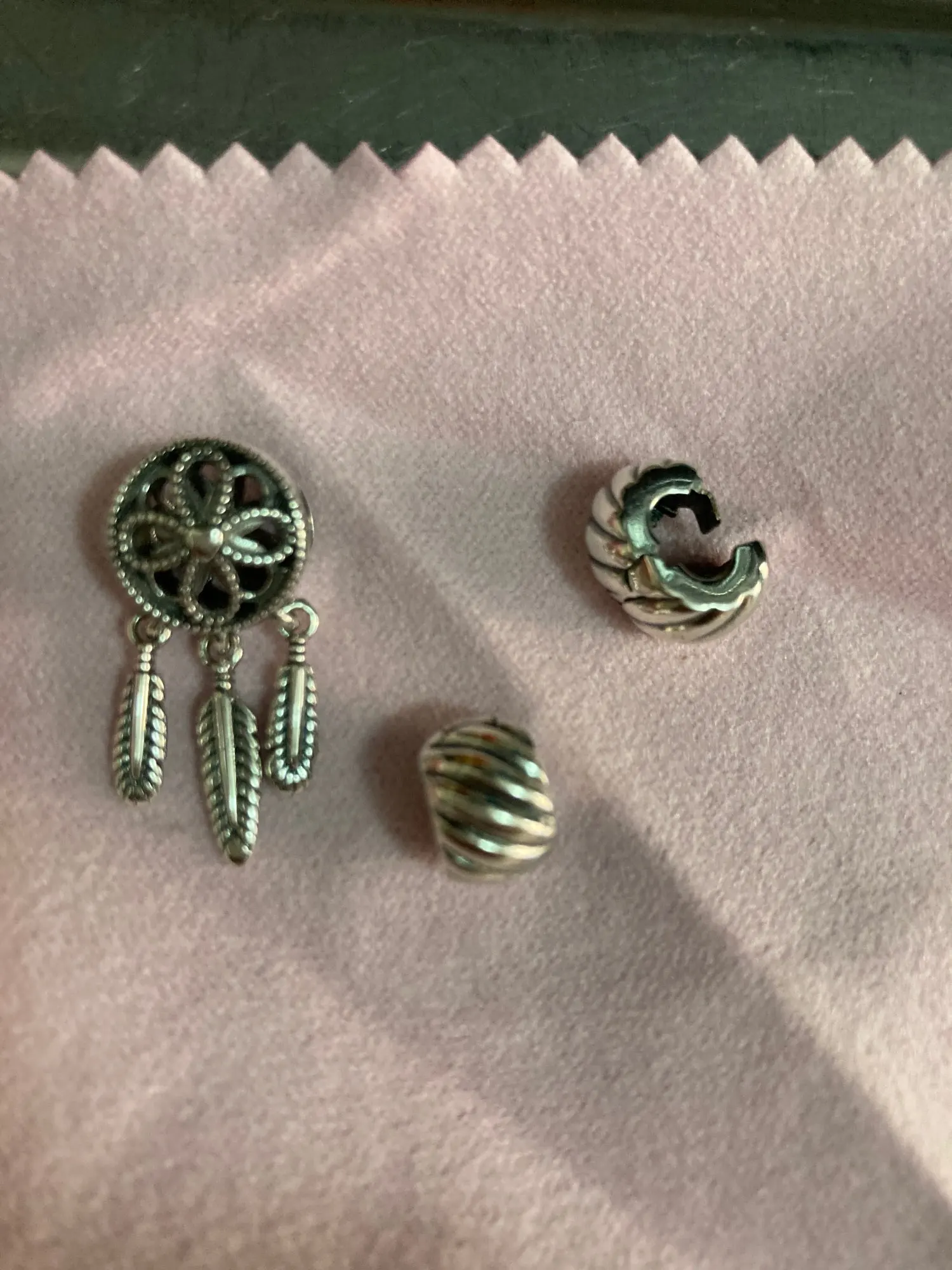 Они выглядят серебристыми, они носят штамп, я оставлю дополнительные комментарии после использования, мне не понравился мальчик намного больше, чем девочка, и я хотел поместить его в ожерелье Пандоры, идеальные зажимы, Доставка занимает некоторое время, почти месяц