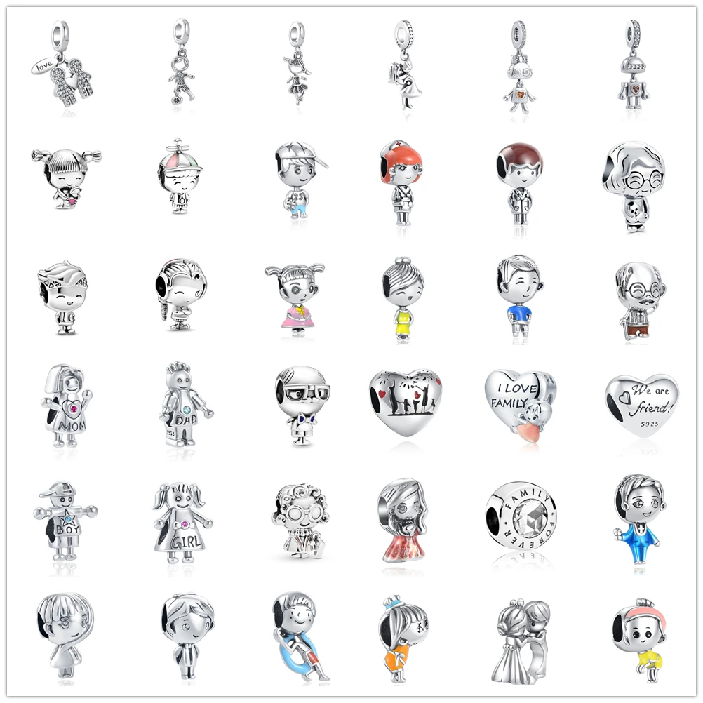 Новые искусственные серебряные металлические бусины, подвеска для мальчиков и девочек, оригинальные шармы Pandora, серебряный браслет 925 пробы, подлинные подарки ко дню Святого Валентина