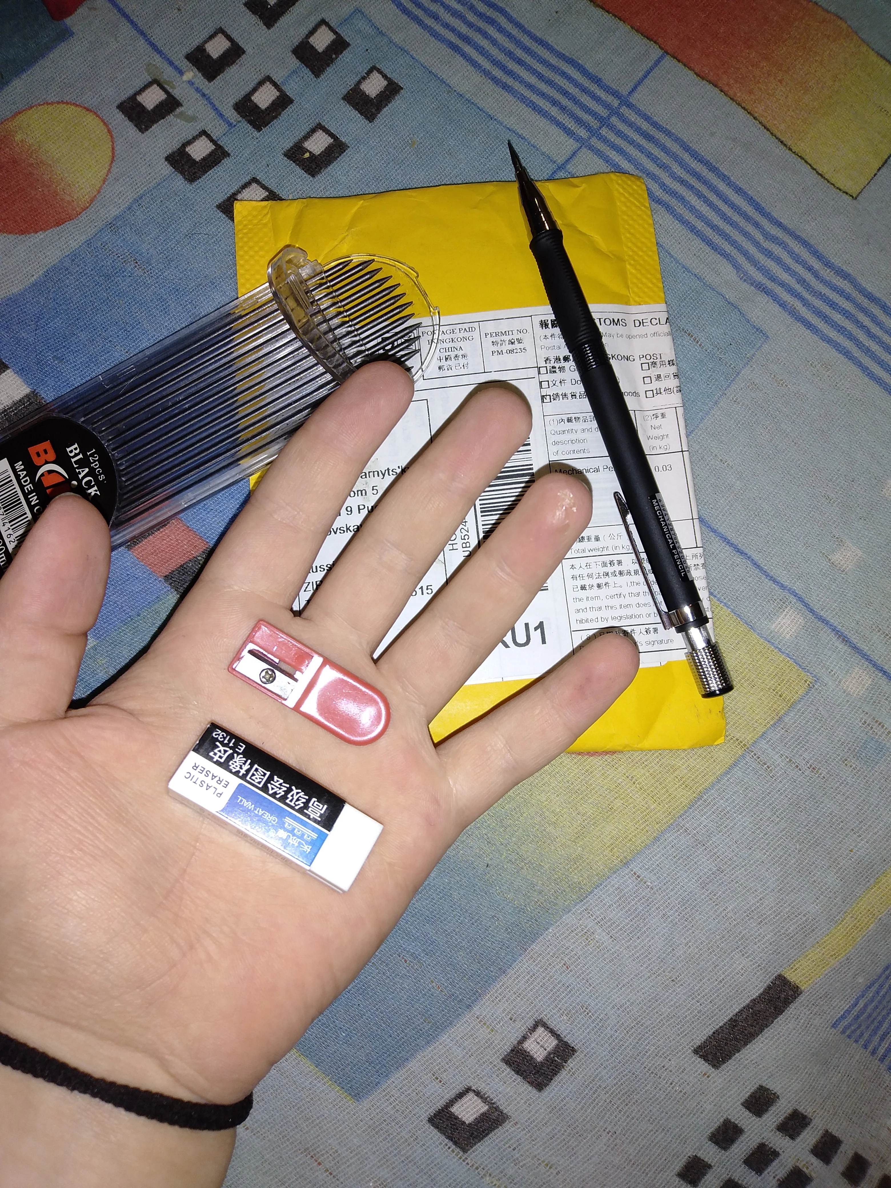 Быстрая доставка и тонкий карандаш. Качество ручки может быть лучше, но хорошо он работает. Удовлетворенный клиент.