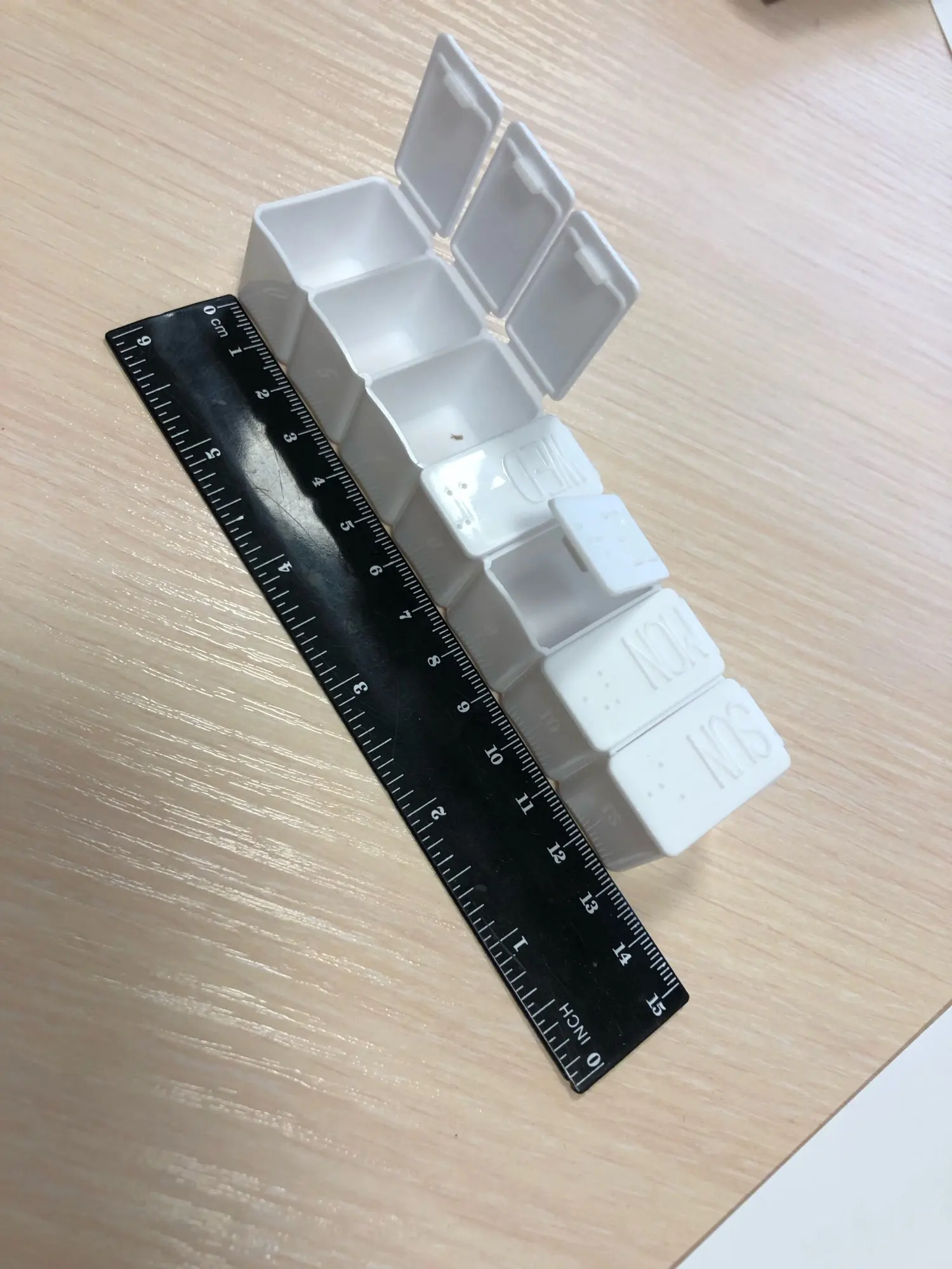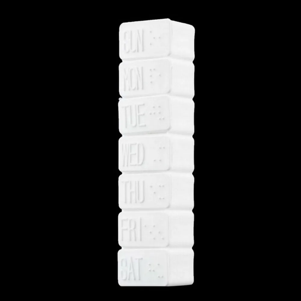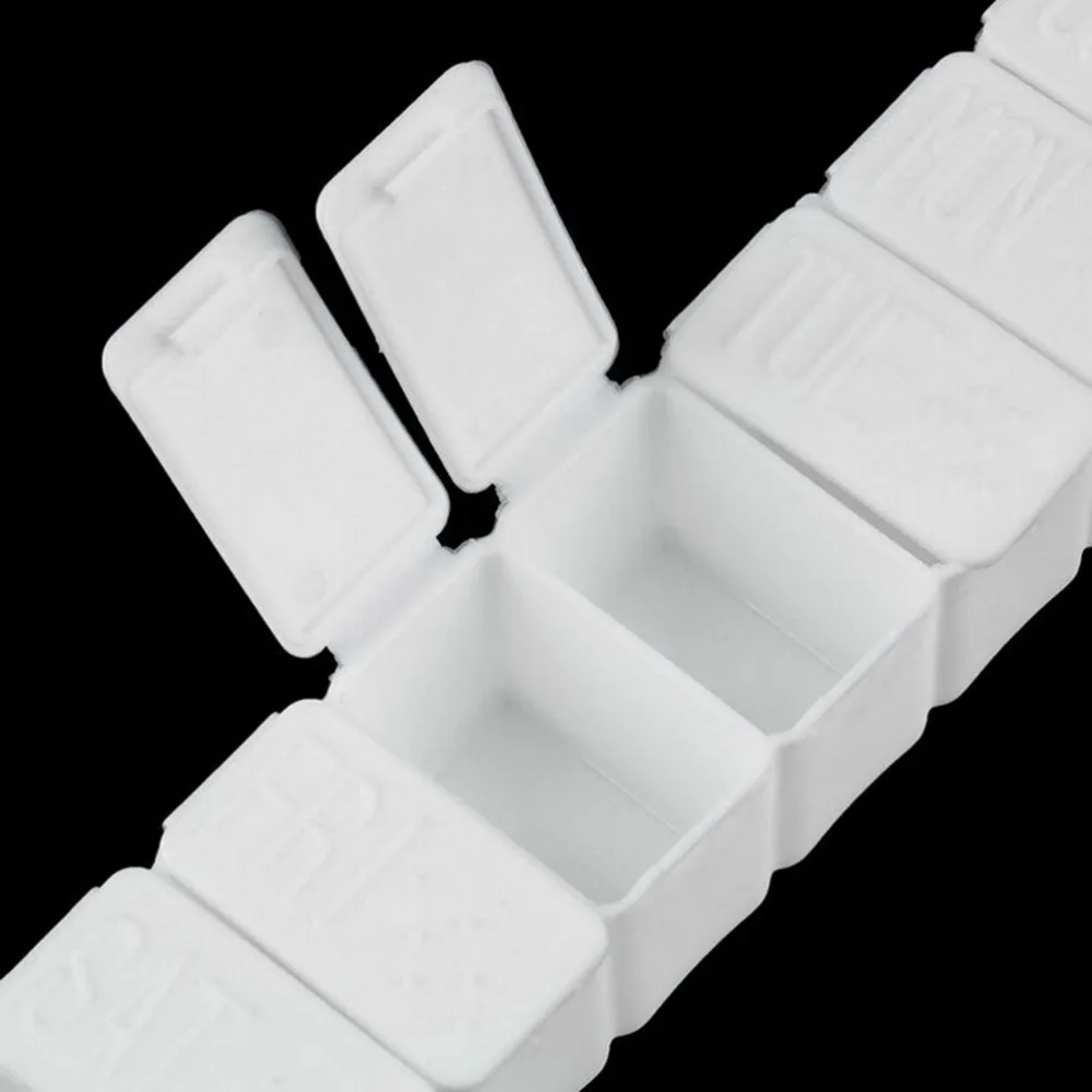 Изготовлен из высококачественного пластика. Предназначен для 7 небольших отдельных коробок (несъемных). Размер всей коробки: 132x30x27 мм Размер каждой маленькой коробки: 20x30x27 мм Содержание упаковки: 1x7 дней коробка для таблеток