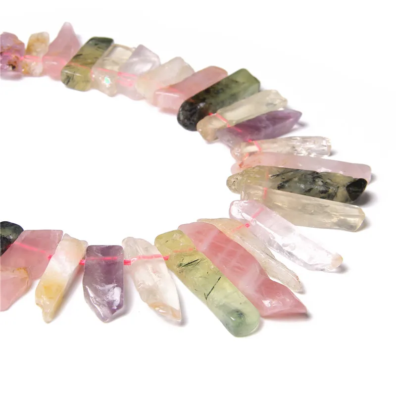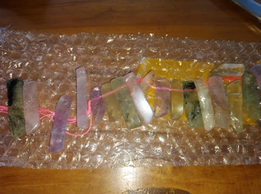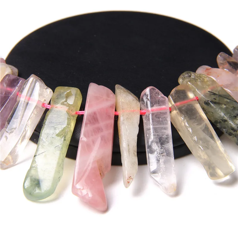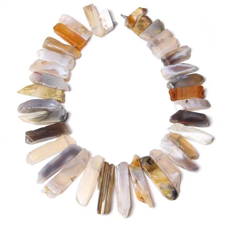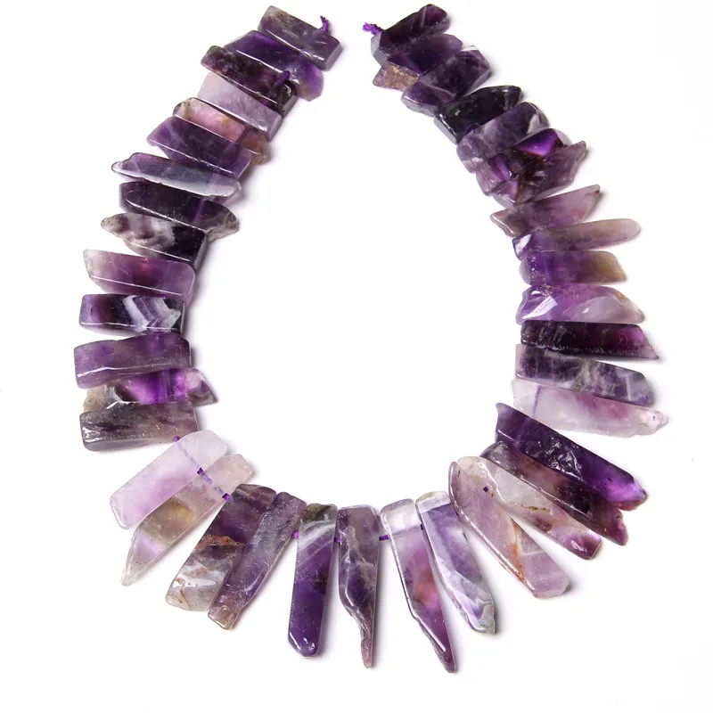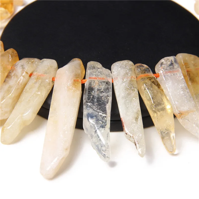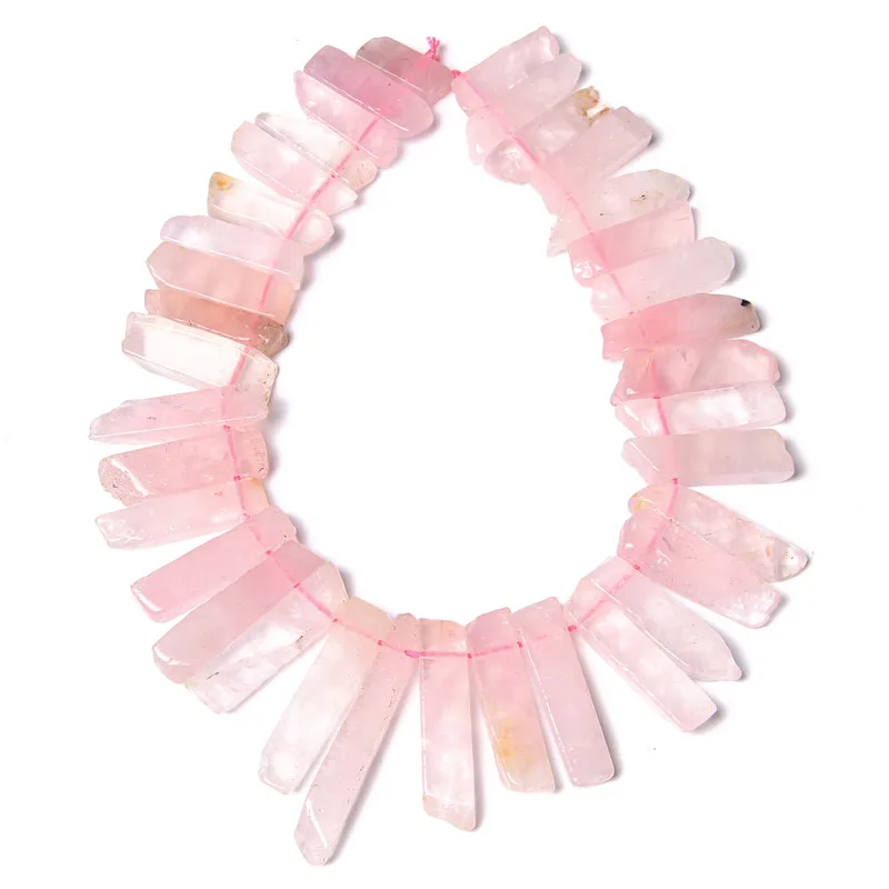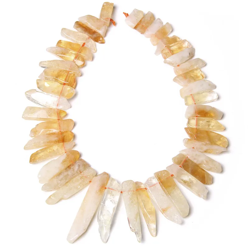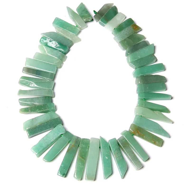 I had never ordered from these guys and I was a little afraid. The stones were perfect I loved them, They are polished perfectly and each point is large enough to use. Some times when you get a graduated strand the small ones are extremely small that is NOT the case with these. Every stick is usable. They came in 40 days, they were wrapped securely. Love this honest seller.