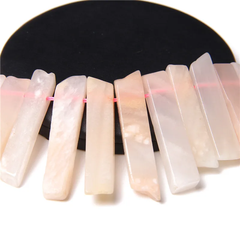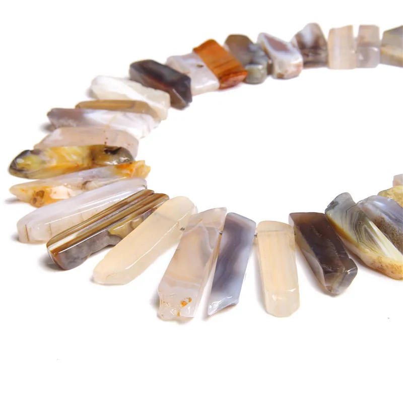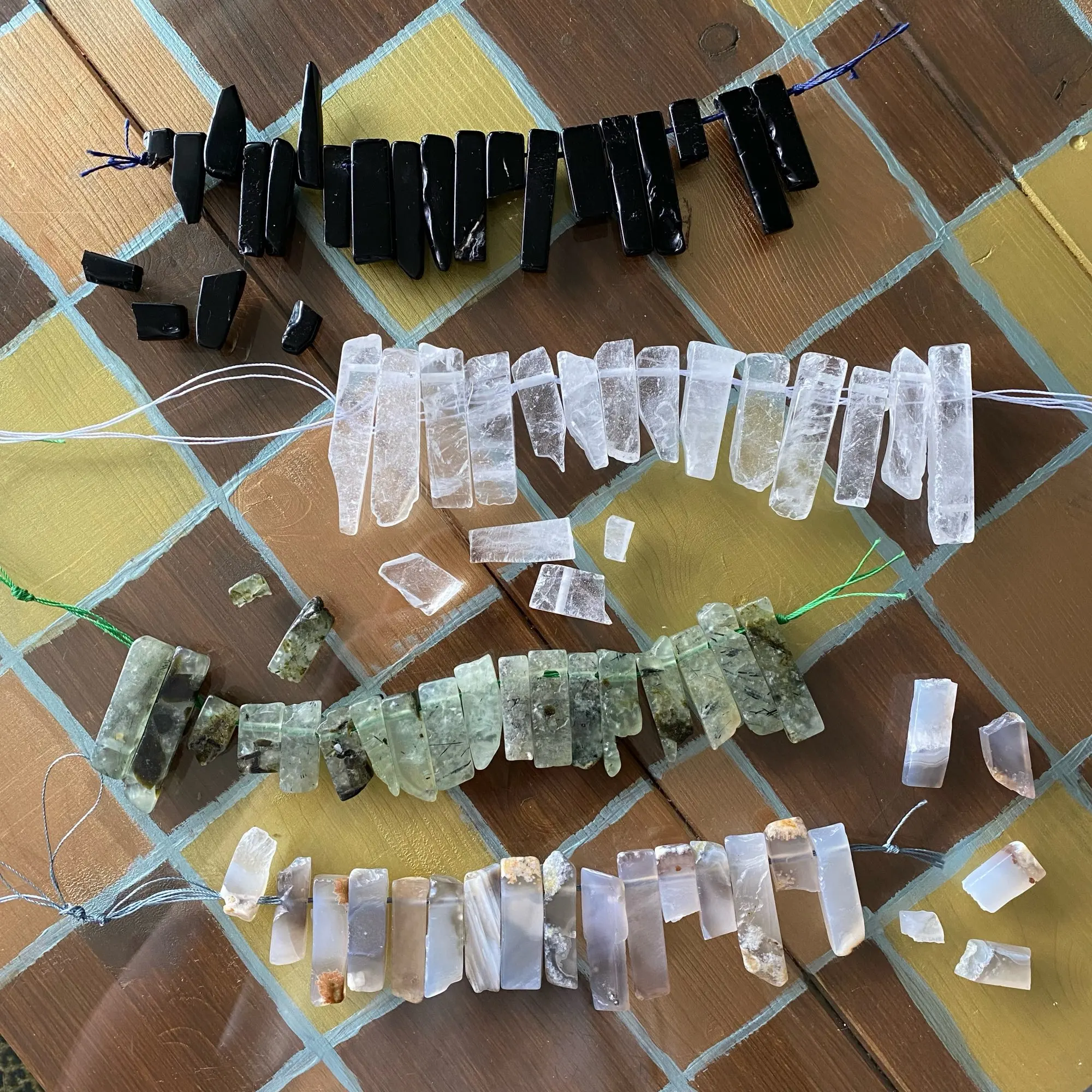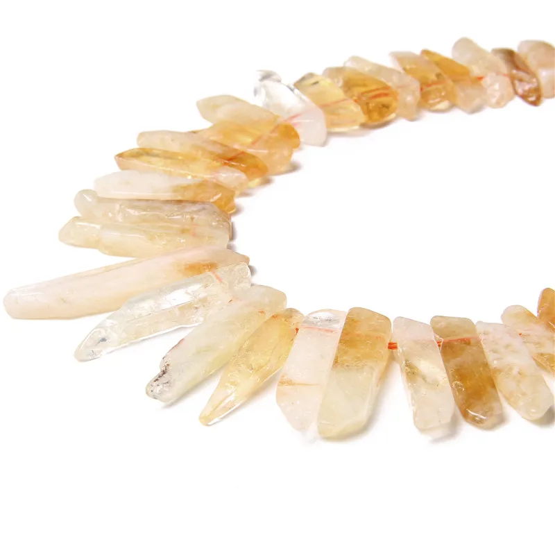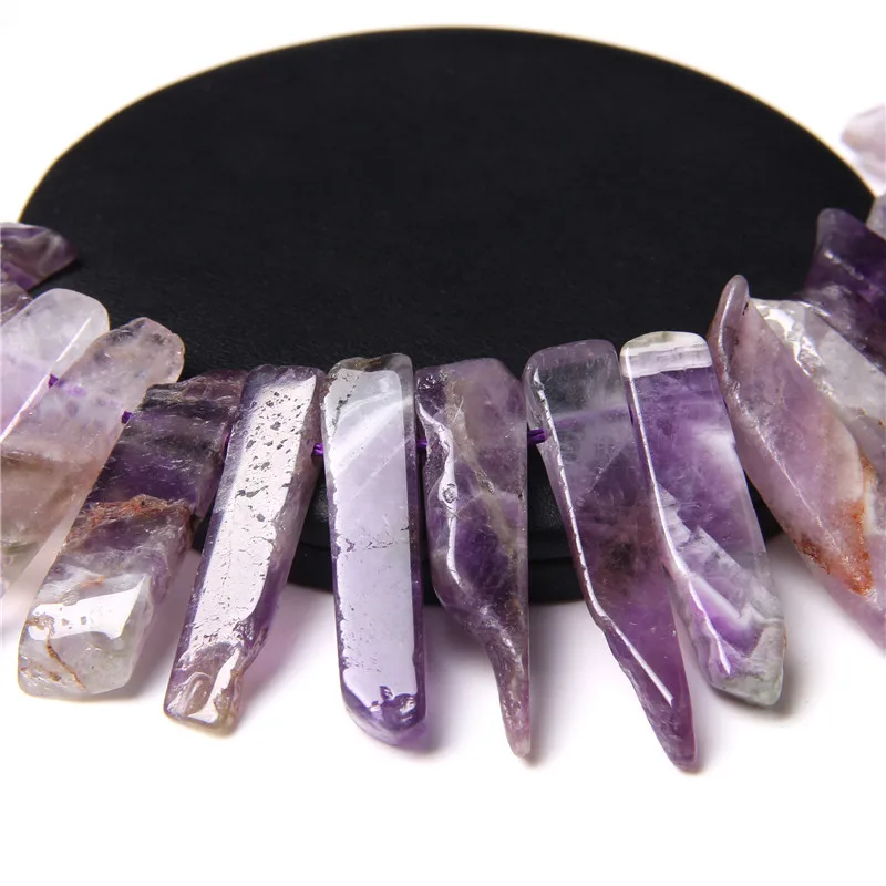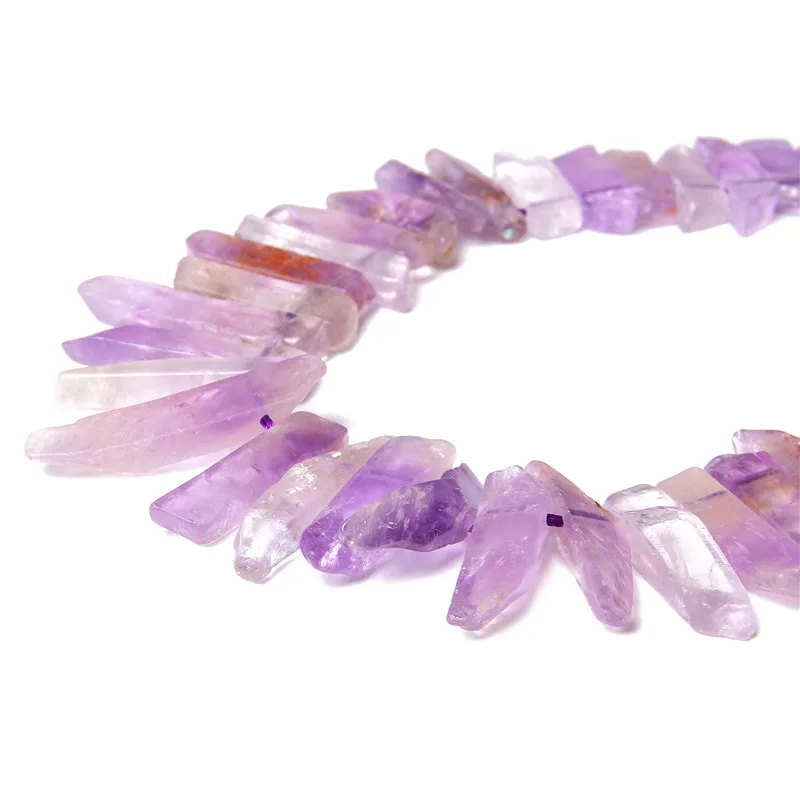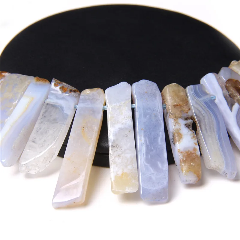 I had never ordered from these guys and I was a little afraid. The stones were perfect I loved them, They are polished perfectly and each point is large enough to use. Some times when you get a graduated strand the small ones are extremely small that is NOT the case with these. Every stick is usable. They came in 40 days, they were wrapped securely. Love this honest seller.