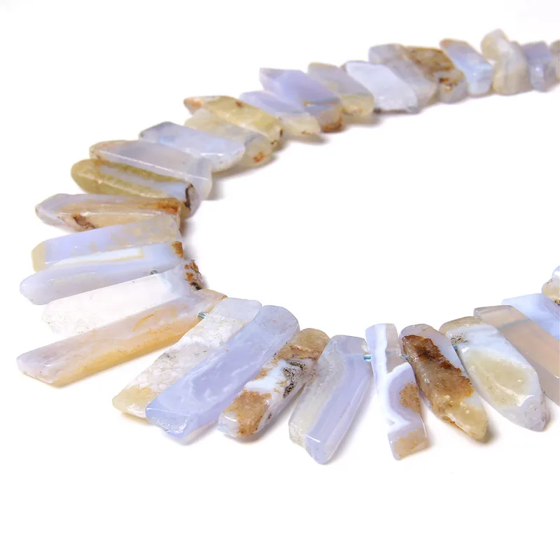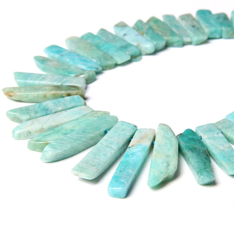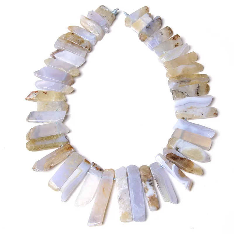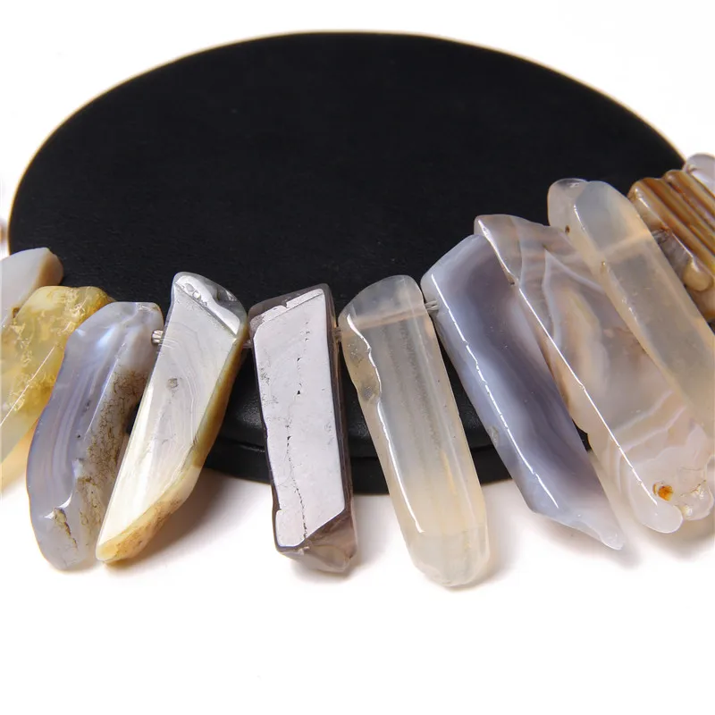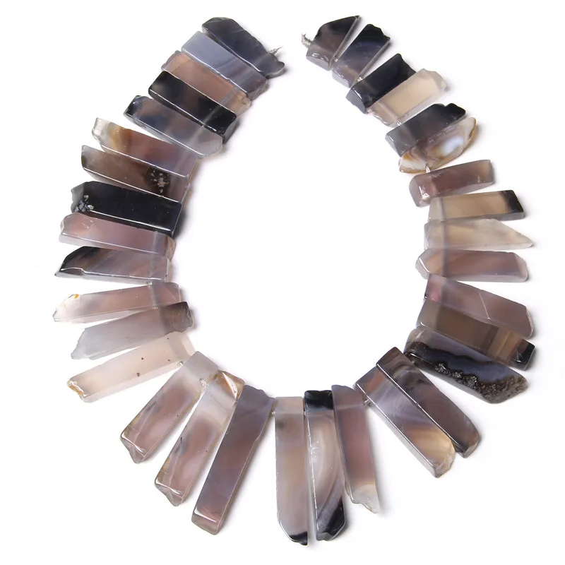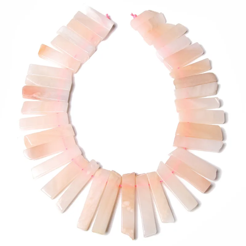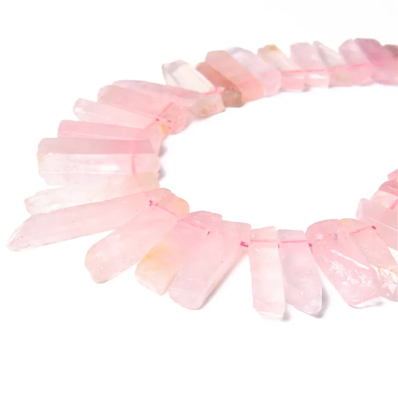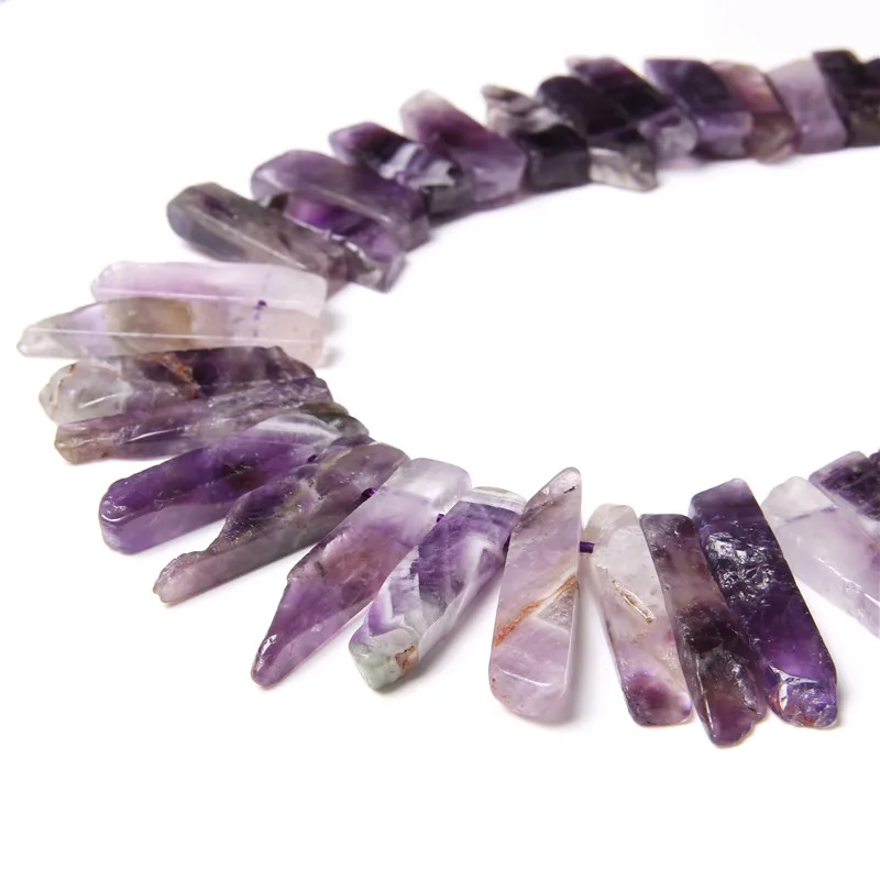 I had never ordered from these guys and I was a little afraid. The stones were perfect I loved them, They are polished perfectly and each point is large enough to use. Some times when you get a graduated strand the small ones are extremely small that is NOT the case with these. Every stick is usable. They came in 40 days, they were wrapped securely. Love this honest seller.