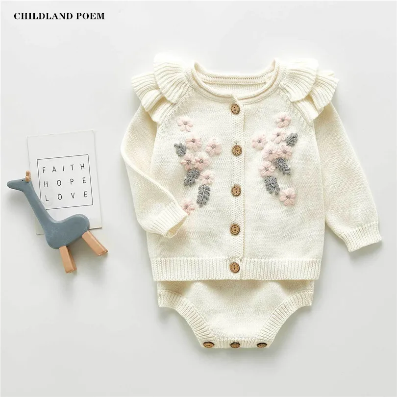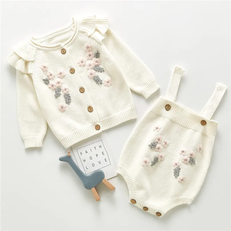 Вязаная детская одежда, Осенний детский комбинезон, комбинезон с цветами для маленьких принцесс, комбинезон для маленьких девочек, свитер для маленьких девочек, кардиган