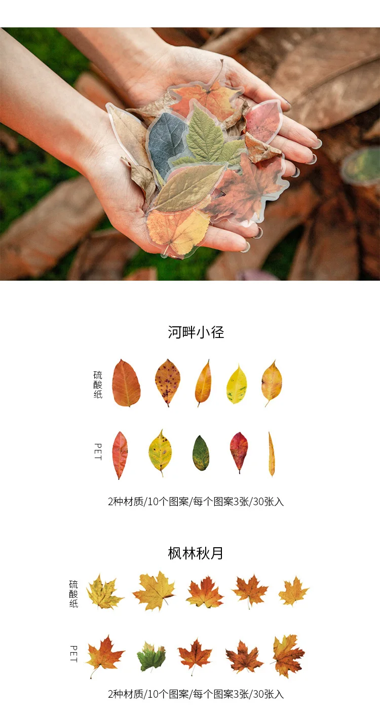 Бумажная наклейка с павшими листьями, для украшения дневника, альбома, скрапбукинга, 30, шт.пакет г.