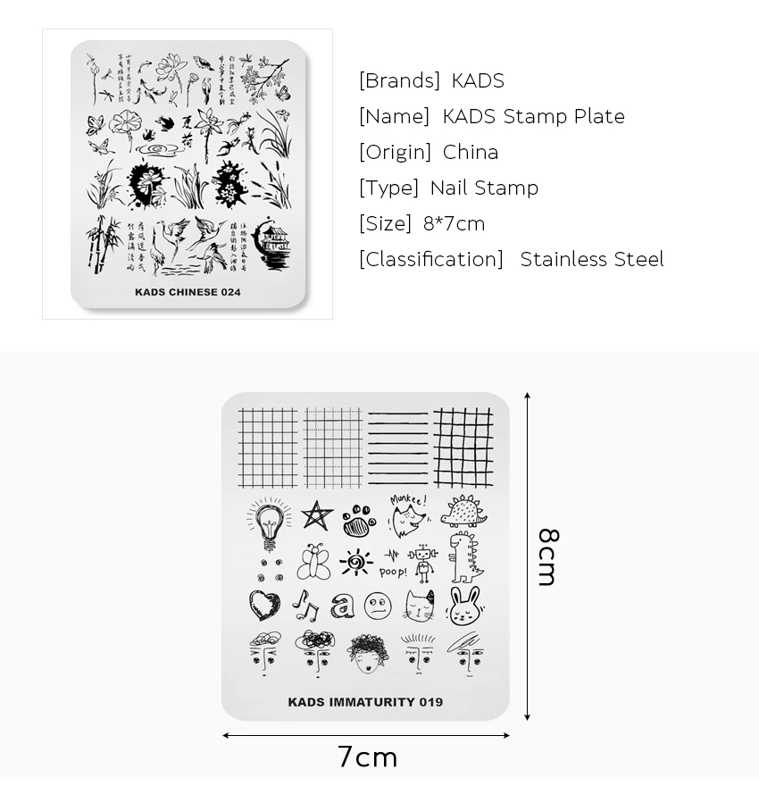 Пластина для ногтей KADS с китайскими штампами, лотос, змея, стрекоза, разные узоры, инструменты для дизайна ногтей, трафареты для стемпинга трафаретная пластина