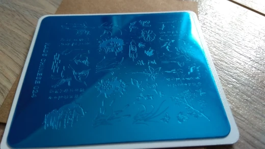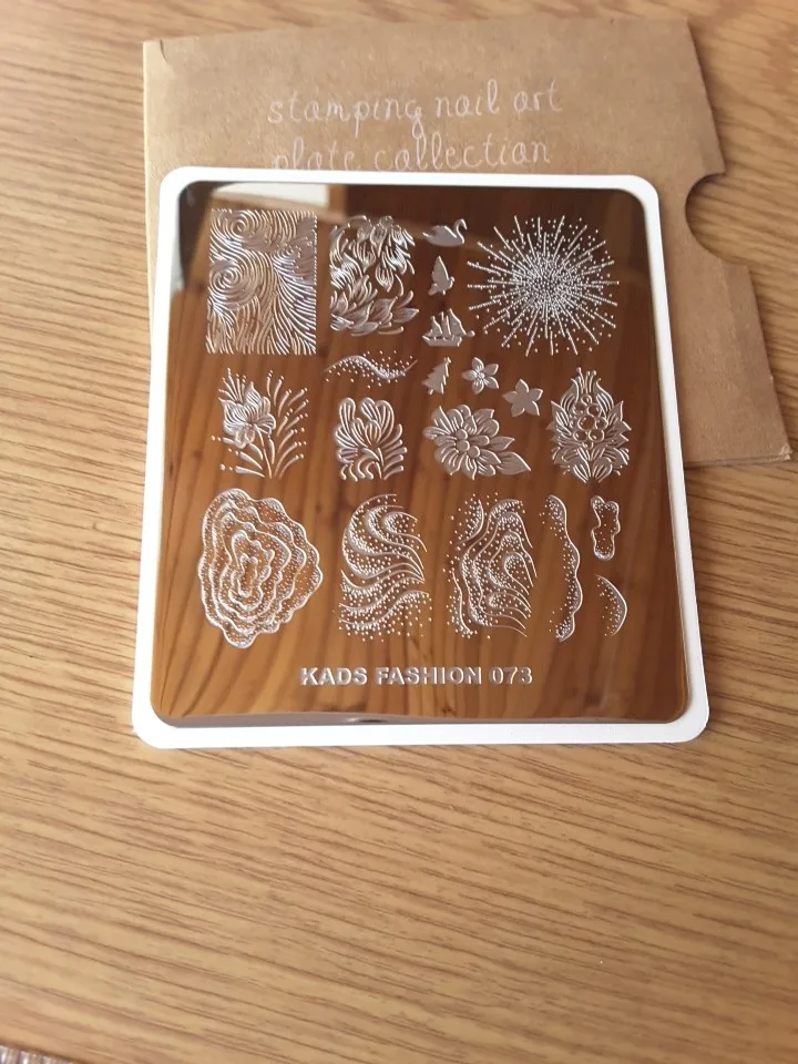 Очень классная пластина, всё четко отпечатывается, у меня не было спец красок, делала обычным лаком для ногтей.