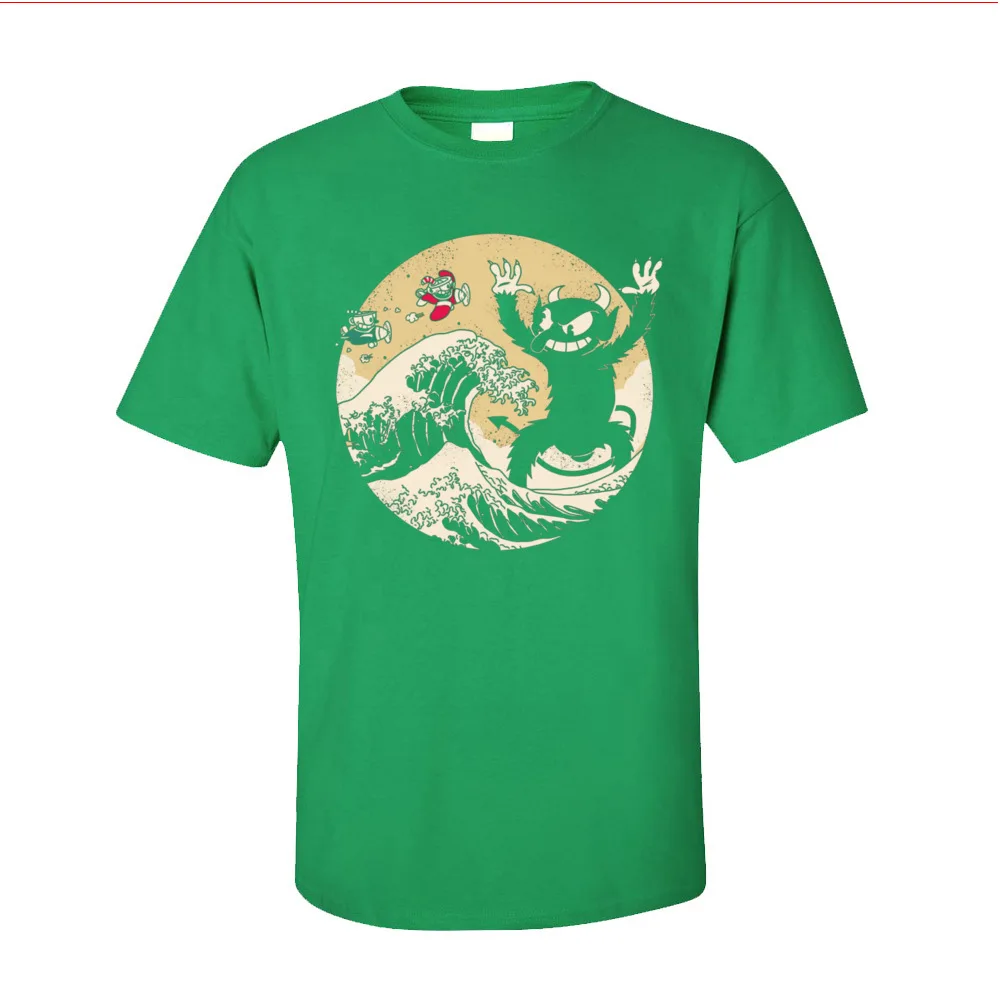 Мужские Топы И Футболки с надписью Great Wave, Ретро стиль, игра, битва, дизайн, лето, чистый хлопок, круглый вырез, Повседневная футболка Семейные футболки с короткими рукавами