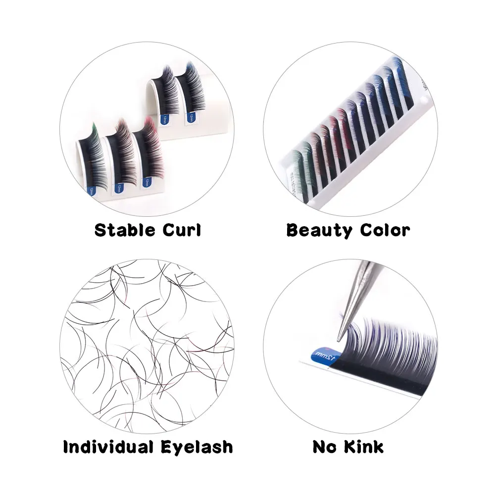 Ресницы для наращивания, шелковые, толщина 0,070,10 мм, разные цвета