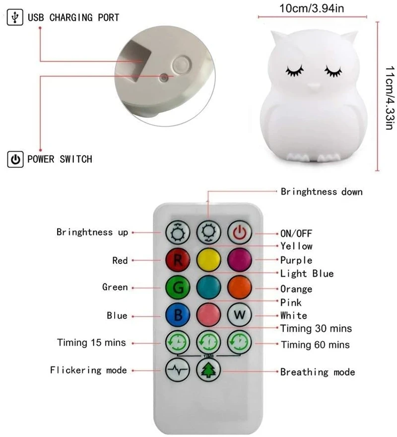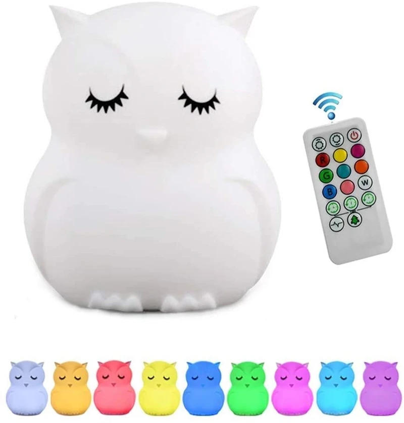 Силиконовый ночник с милыми животными, детский ночник с сенсорным датчиком и дистанционным управлением, перезаряжаемая лампа с меняющим цвет совами
