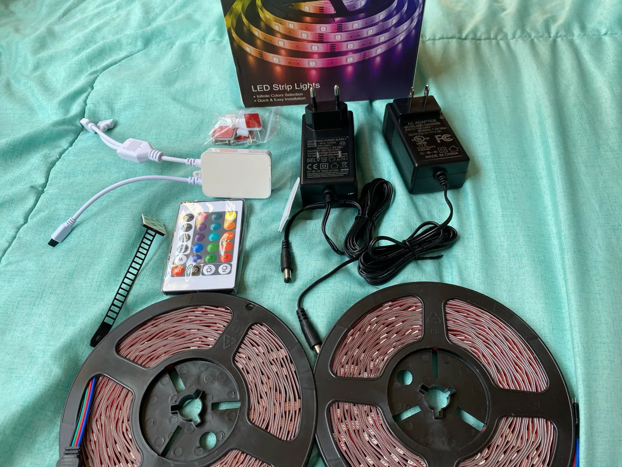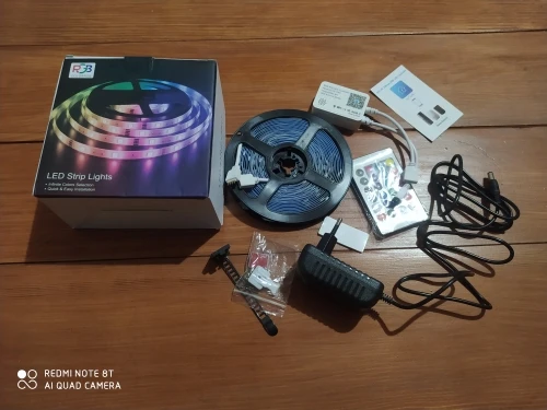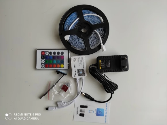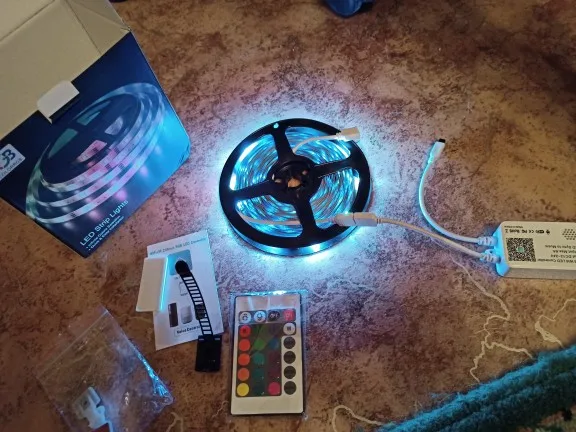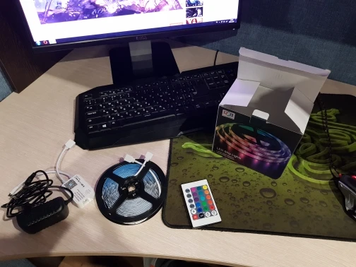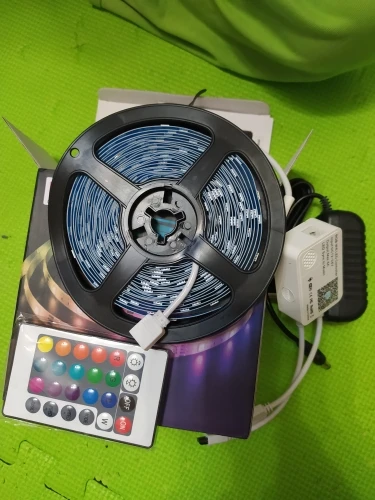 Выиграл ленту за монеты,и я точно помню,что в розыгрыше была именно только лента,100 штук прод выставил.Трэк отслеживался,и я очень удивился когда открыл пакет.Внутри была коробка,а в ней полный комплект,не хватало только батарейки к пульту,но она у меня была.Управлять лентой можно пультом,но он работает через инфракрасный датчик,как телевизор.Можно также управлять через приложение,подключается по wi-fi сети,это намного удобнее.Кроме различных сценариев подсветки,есть музыкальный режим,но вот музыка должна быть громкой,или источник музыки очень близко к контроллеру,тогда может играть и потише.При определенных режимах,особенно белый,контроллер издает лёгкий свист.В общем покупкой доволен,вот только не придумал,пока,куда ее пристроить.