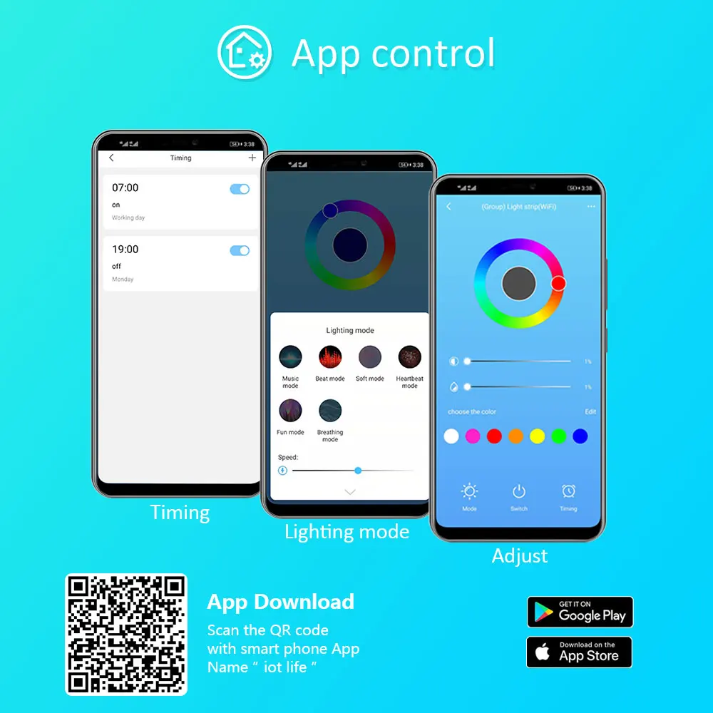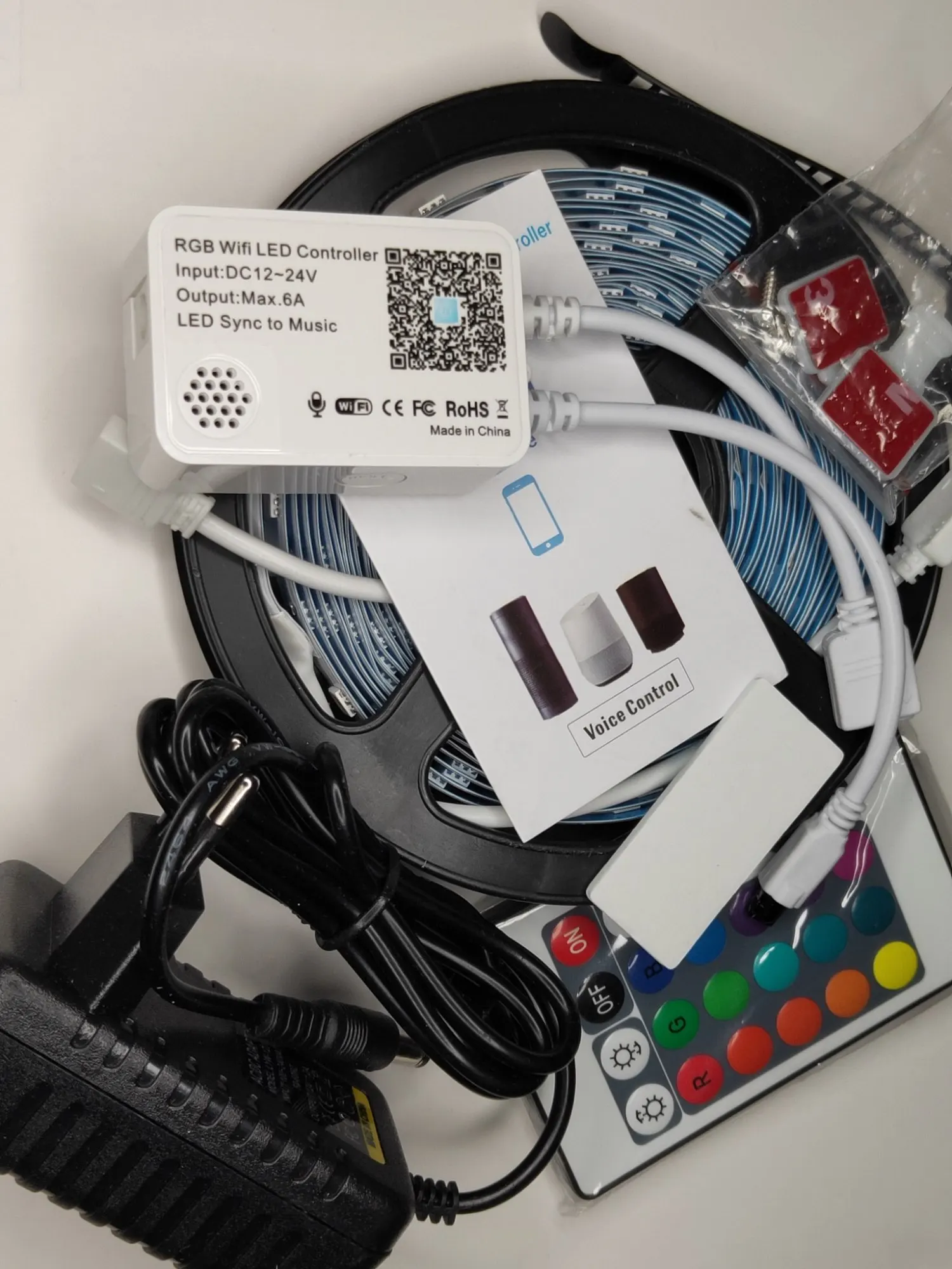 Светодиодная лента работает,управление с пульта(требуется отдельно купить батарейку)отличный блок питания. По приложению с использованием вайфая управлять не получилось, но вайфай находит, Доставка быстрая,продавец быстро отправил заказ,рекомендую!