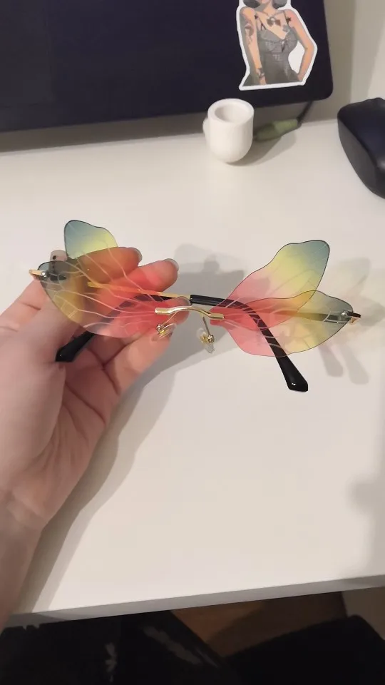 Очки оригинальные, тонко и качественно выполнены, смотрятся весьма интересно, нежно. Однозначно стоят своих денег. Красивый цвет. Упакованы были на славу, в 4 руки с дочкой разматывали, ничего не повредилось. Дошли за 17 дней с момента заказа. Спасибо продавцу!