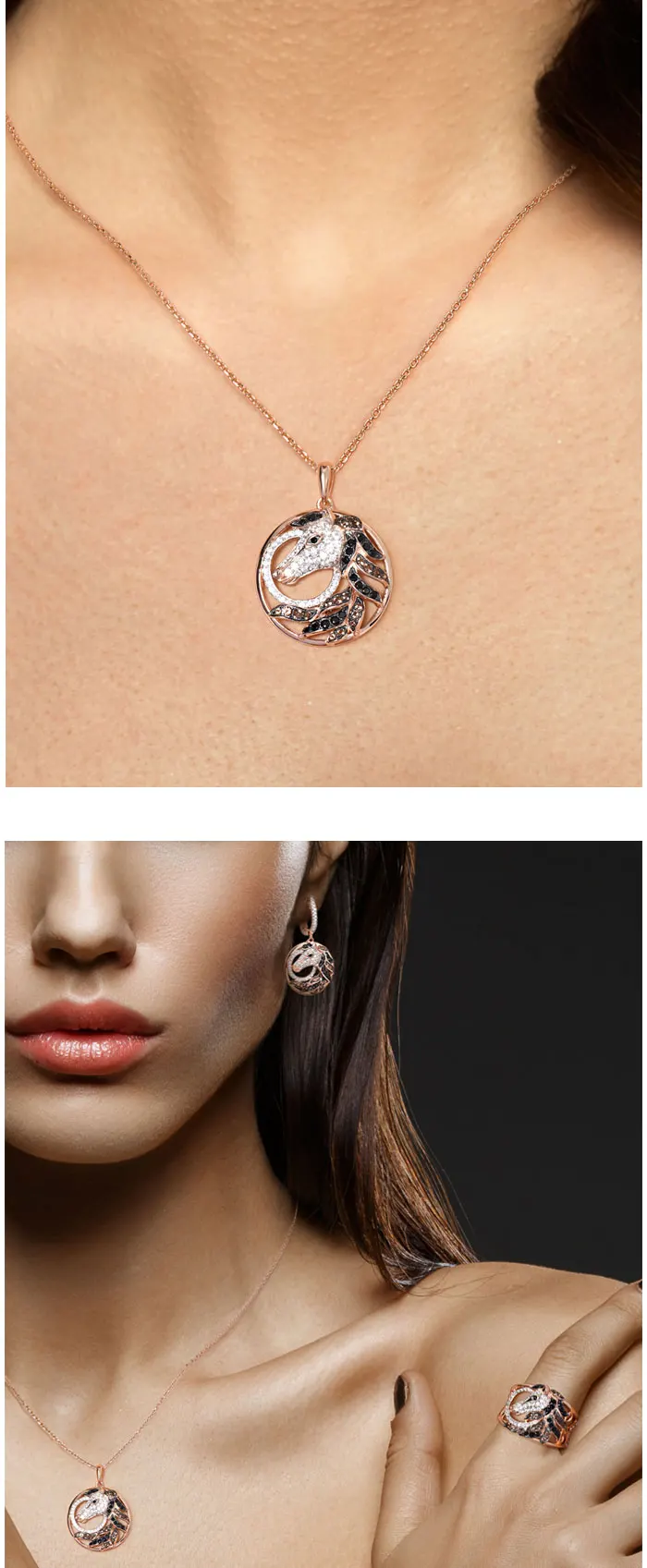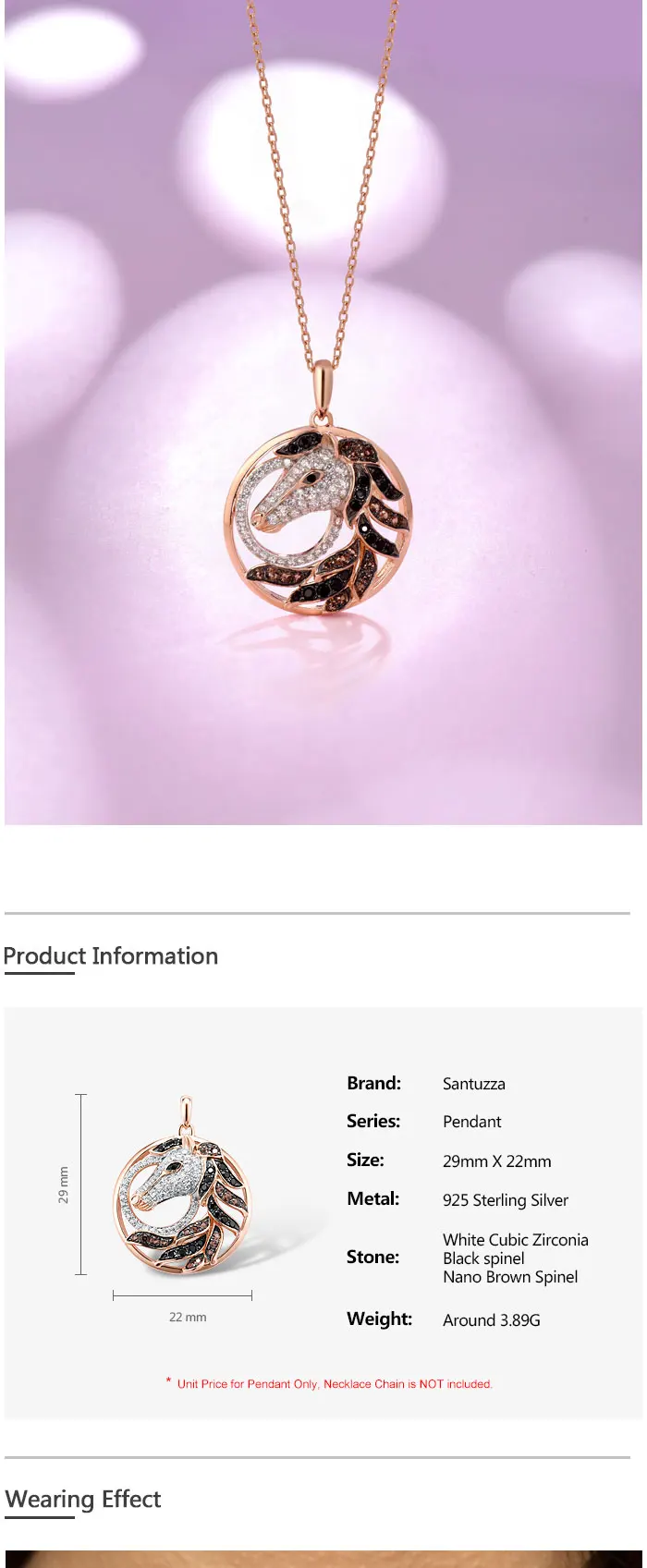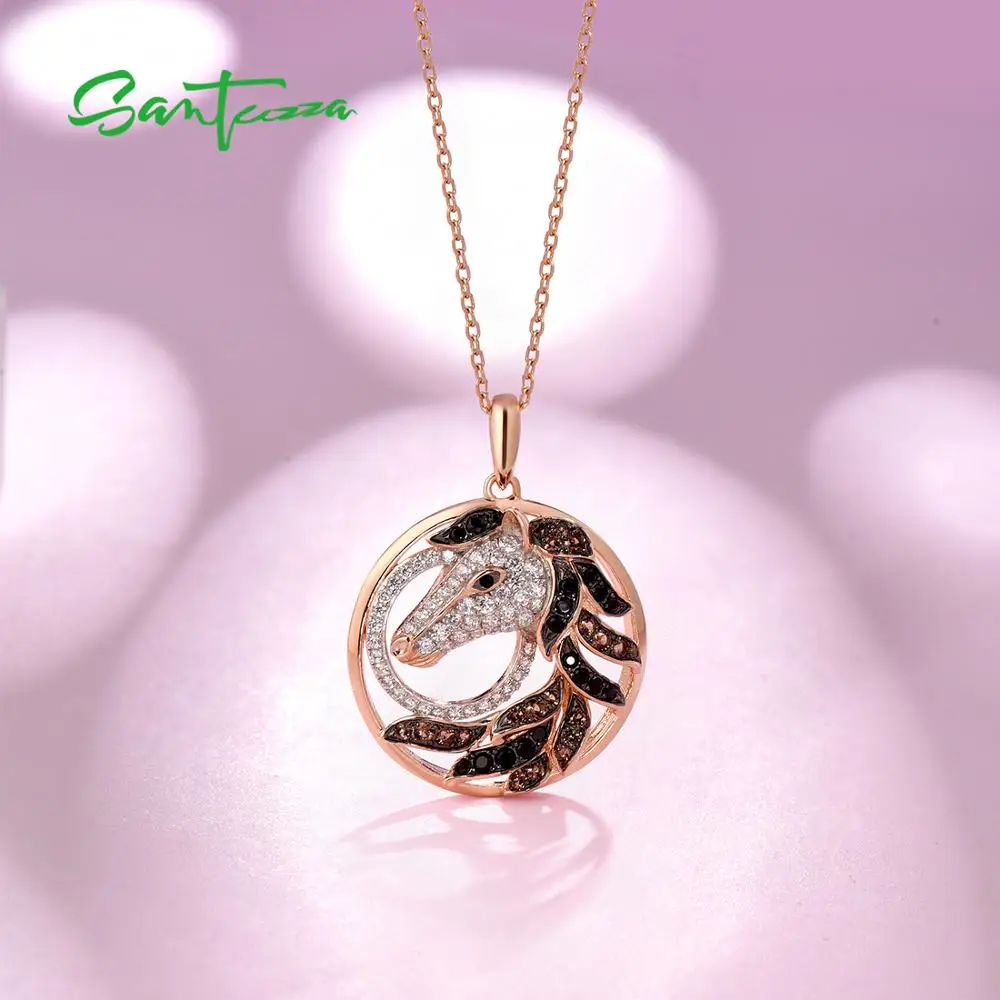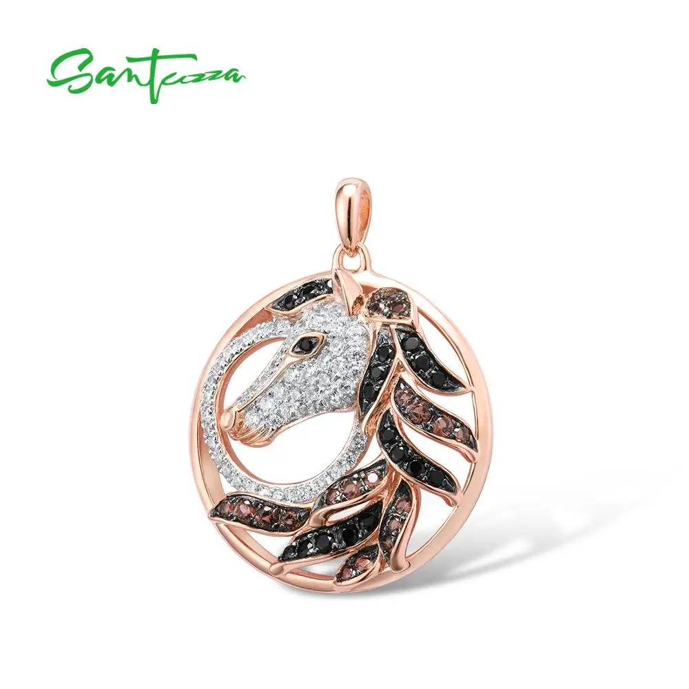 Женский серебряный кулон SANTUZZA, изящная вечерняя Подвеска из серебра 925 пробы цвета розовое золото черного и коричневого цвета с лошадью