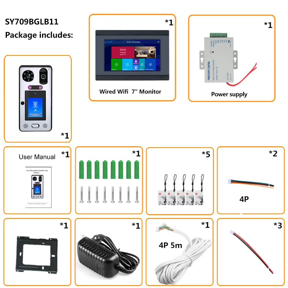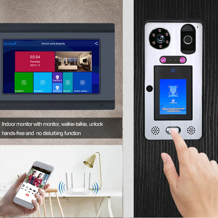 Система внутренней связи Mountainone, беспроводная, с экраном 7 дюймов, Wi-Fi, сканирование лица, сканирование отпечатков пальцев