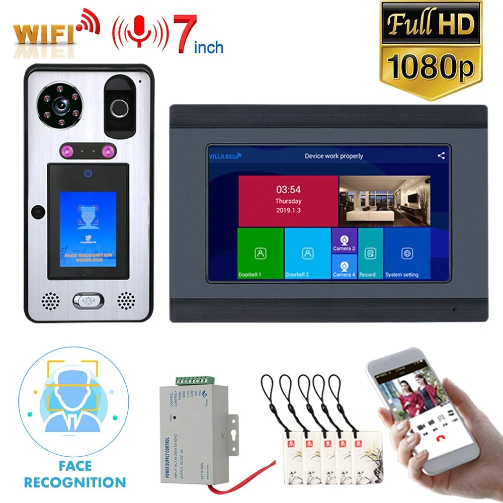 Mountainone 7 дюймов Wifi беспроводной распознавание лица отпечаток пальца IC видео дверной звонок Домофон поддержка мобильный телефон разблокировка