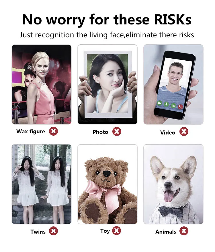 Тип разблокировки: поддержка распознавания лиц 100 шт., отпечатки пальцев 100 шт., отпечатки пальцев 100 шт., Пользовательская Карта IC 100 шт., групповые пароли 100 шт.