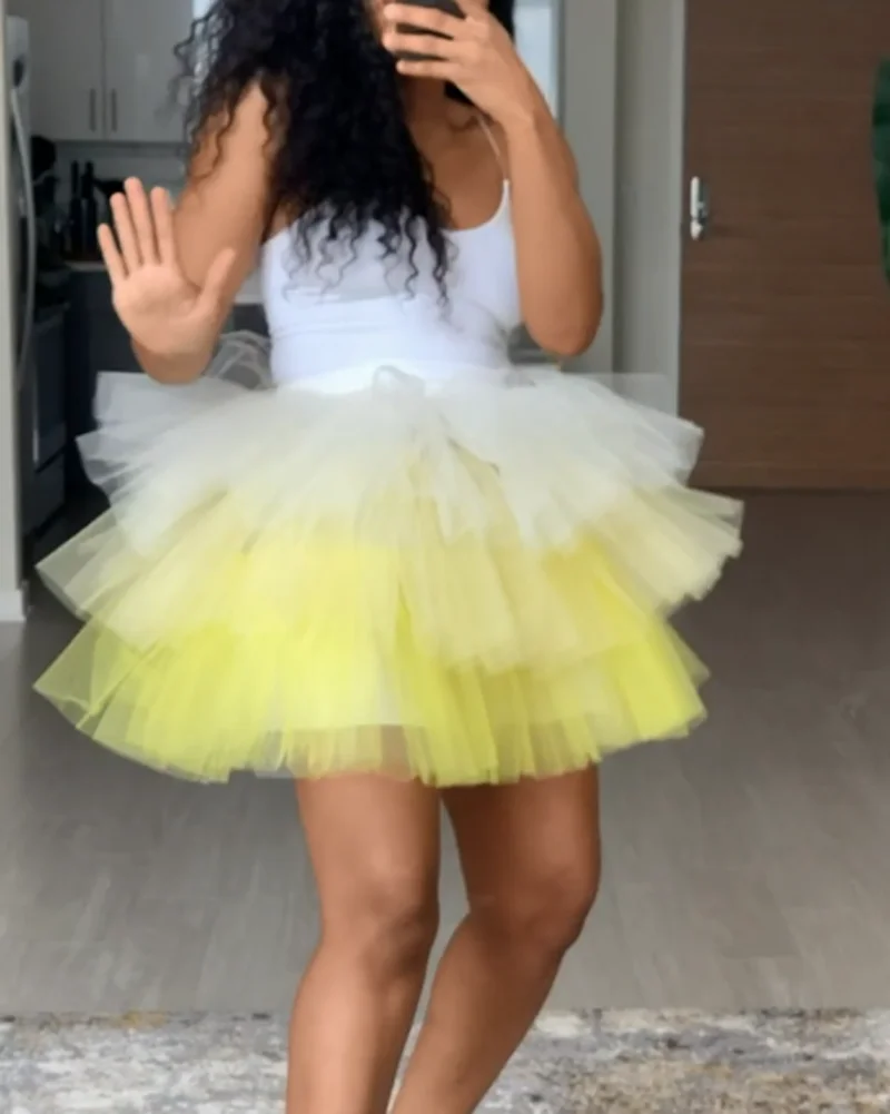 Мини юбка-пачка в несколько рядов желто-белая, индивидуальная короткая юбка из тюля для вечеринки, уличная одежда, дешевая горячая Распродажа, женские юбки