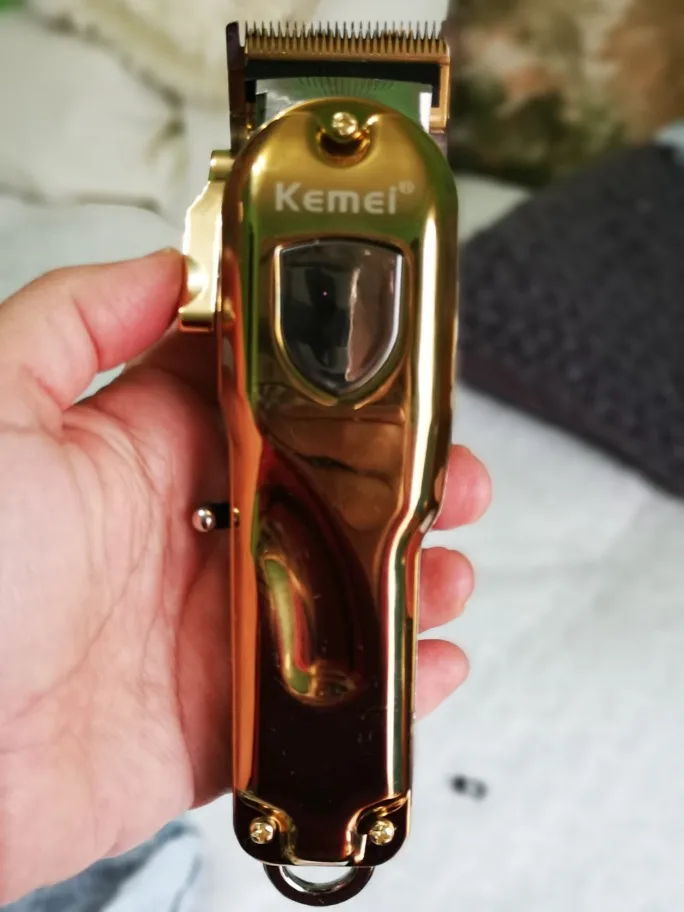 Машинка для стрижки волос, металлическая, беспроводная, золотого и серебряного цвета, с ЖК-дисплеем, KM-2010