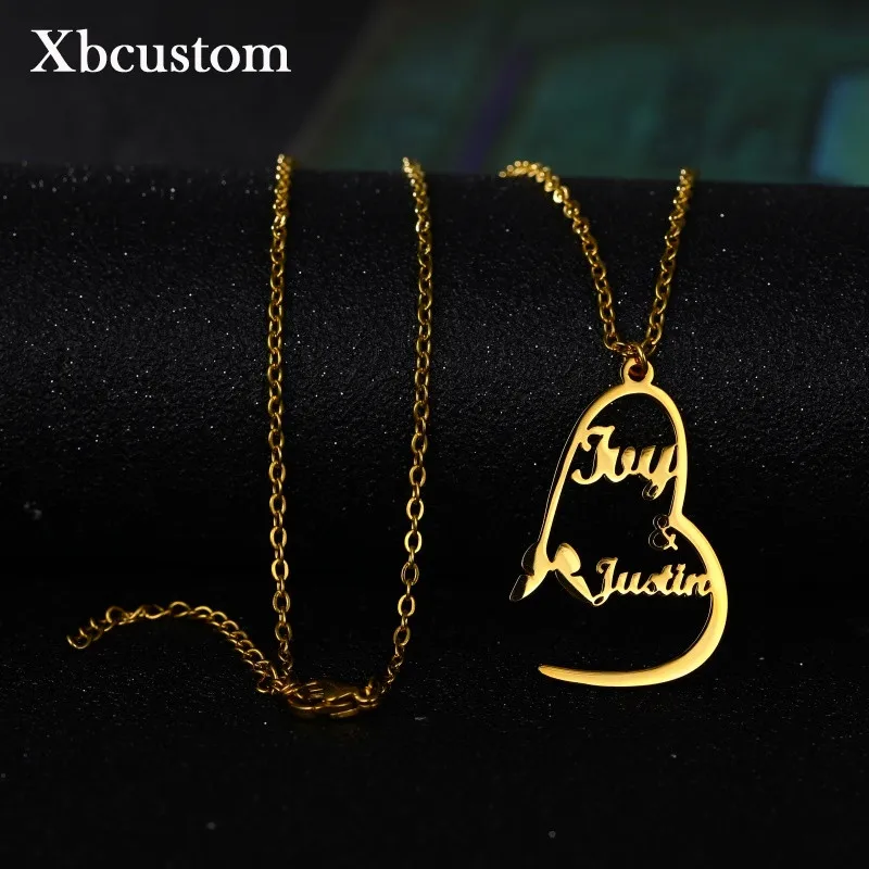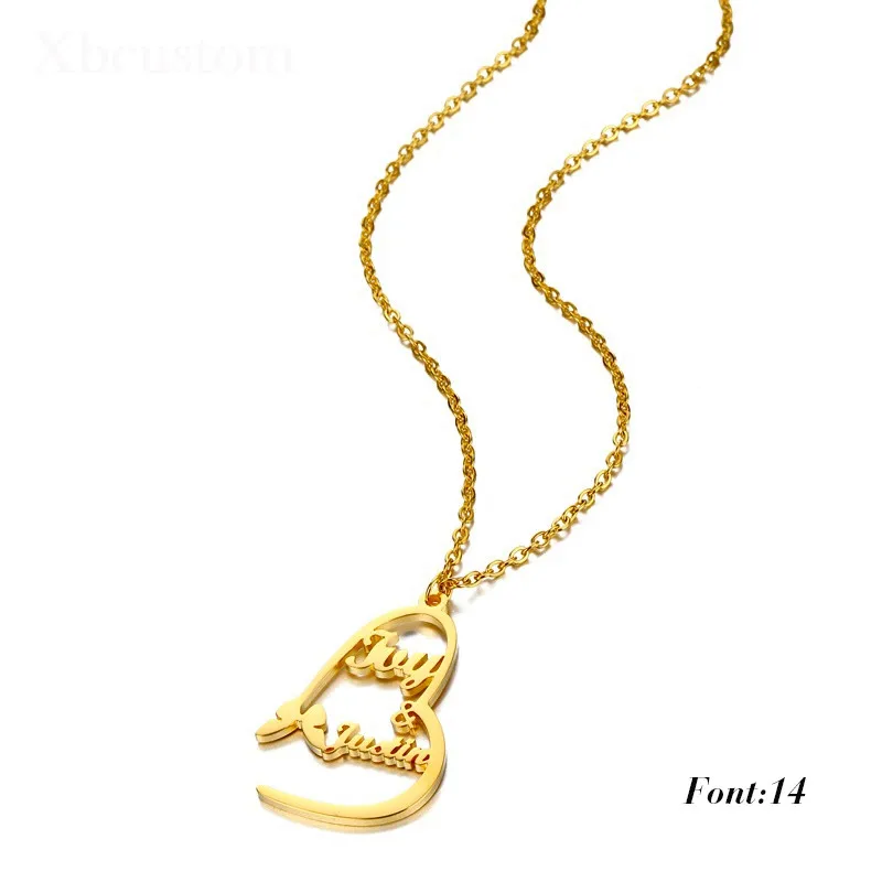 Пользовательское имя ожерелье пара из нержавеющей стали Сердце перс...