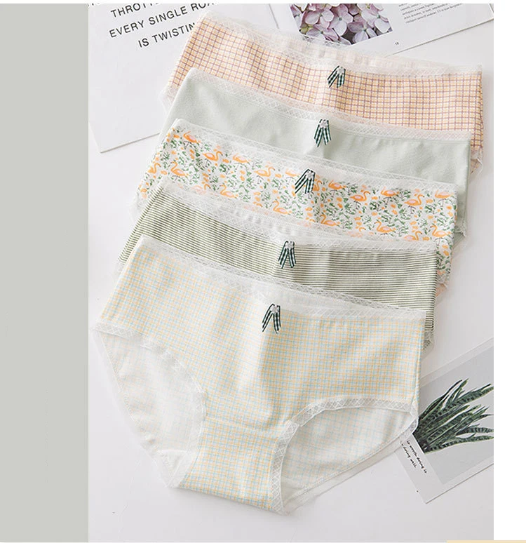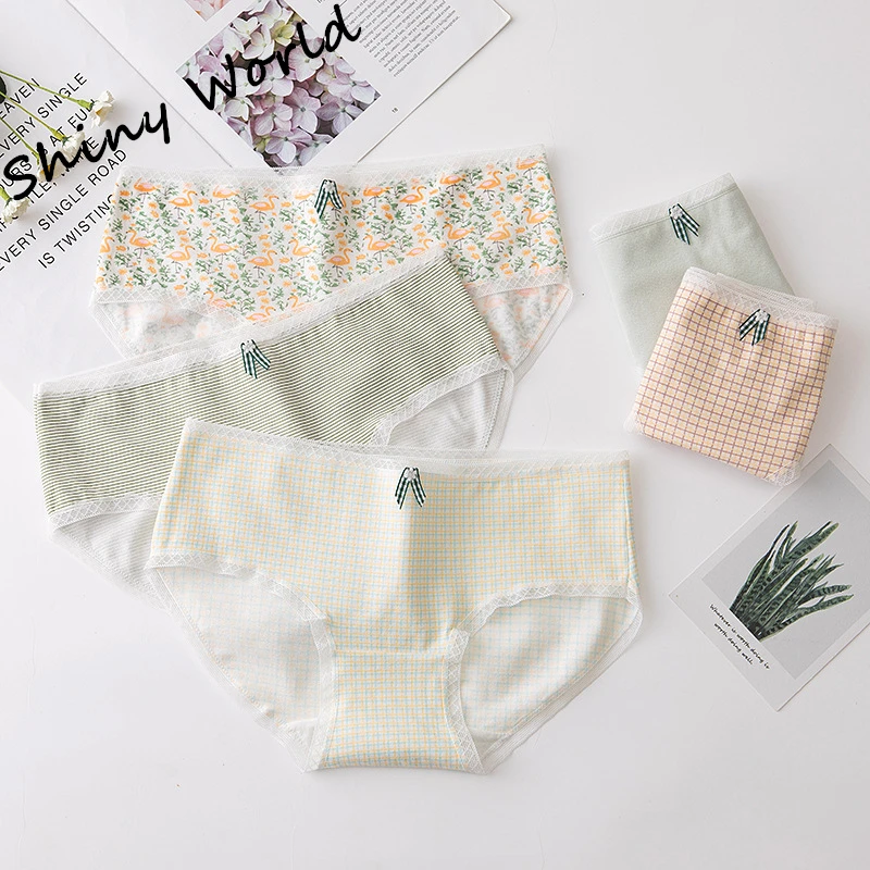Женские хлопковые трусы, плавки для мальчика с принтом в клетку Полосатое нижнее белье с цветочным принтом со средней посадкой трусы мягкие удобные детское нижнее белье Красивые трусы; Милые трусы для женщин удобные трусы