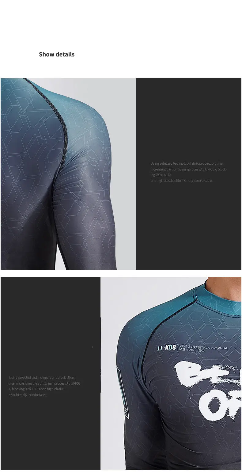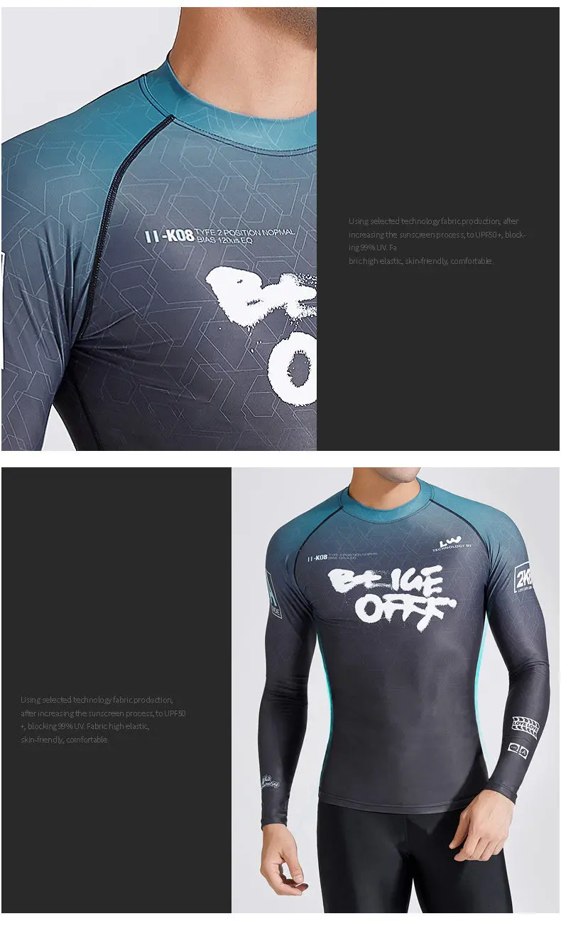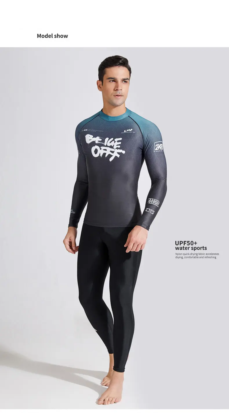 Информация о товаре: Материал: 82% нейлон + 18% спандекс; Размер: L, XL, XXL, XXXL,4XL; Сцена: плавание, махать; С накладкой или нет: без накладки; Характеристики: UPF50 +; Солнцезащитный; 1. Солнцезащитная ткань: после солнцезащитной обработки UPF50 + может блокировать ультрафиолетовые лучи, стойкость цвета 4,5 класса; 2. Быстросохнущая и дышащая: изготовлена из нейлоновой быстросохнущей ткани, которая мягкая и удобная для коллег и обладает сильным быстросохнущим эффектом. 3.3D резка: в соответствии с эргономичным дизайном, Он прилегает к коже, удобен и освежает, с заметными мышечными линиями и свободным челноком в воде.