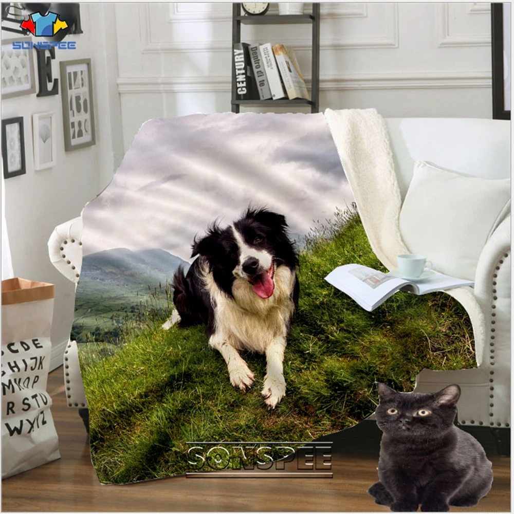 Мягкое флисовое постельное одеяло SONSPEE Border Collie с 3D принтом, модное домашнее Походное одеяло, плюшевое детское одеяло