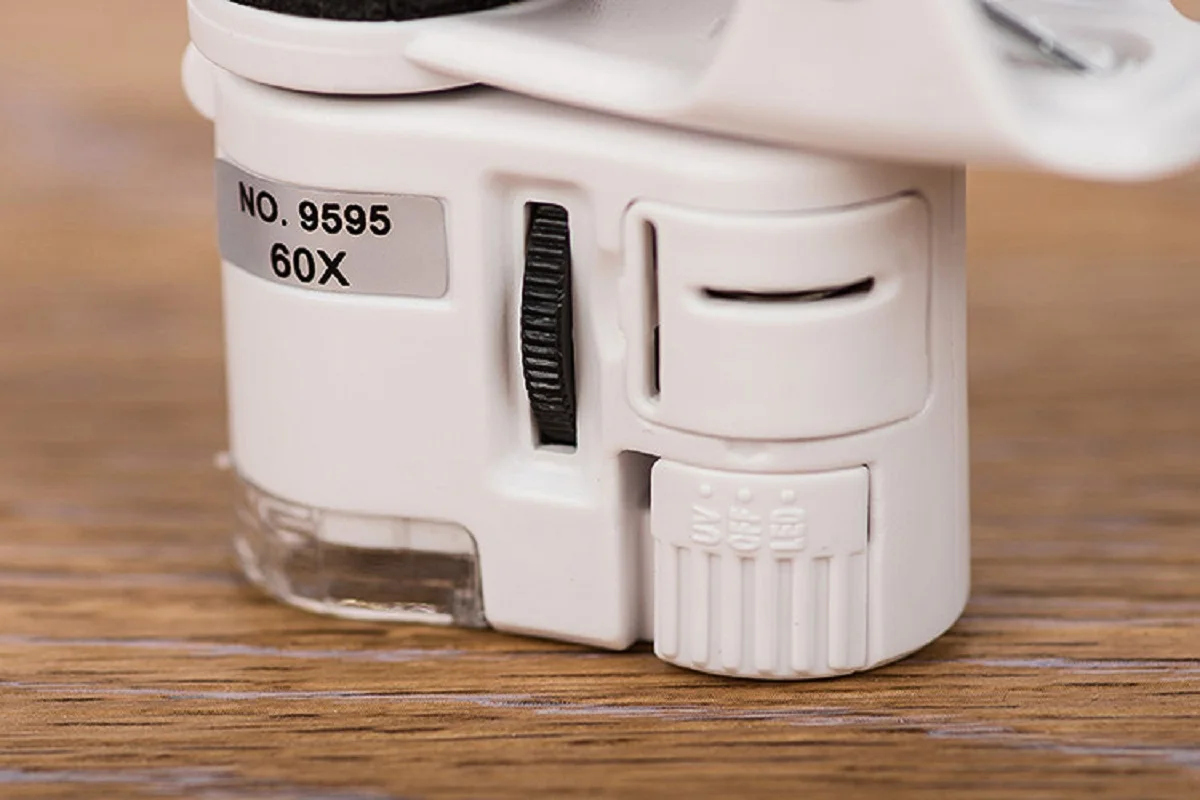 Портативный светодиодный микроскоп для мобильных камер, увеличительные линзы для мобильных телефонов с зажимом и УФ-подсветильник кой для обнаружения денег, 60х